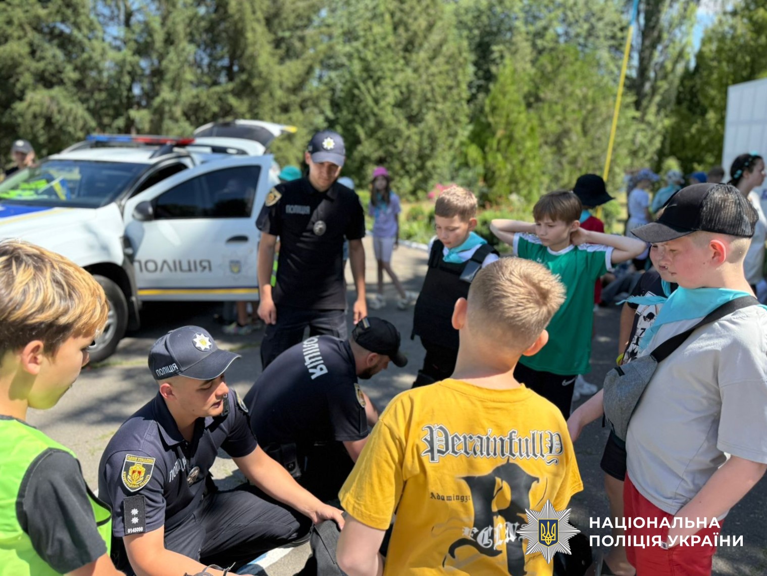 Крім того, діти мали можливість ознайомитись зі службовим автомобілем та спеціальними засобами, які використовуються поліцейськими у щоденній діяльності.