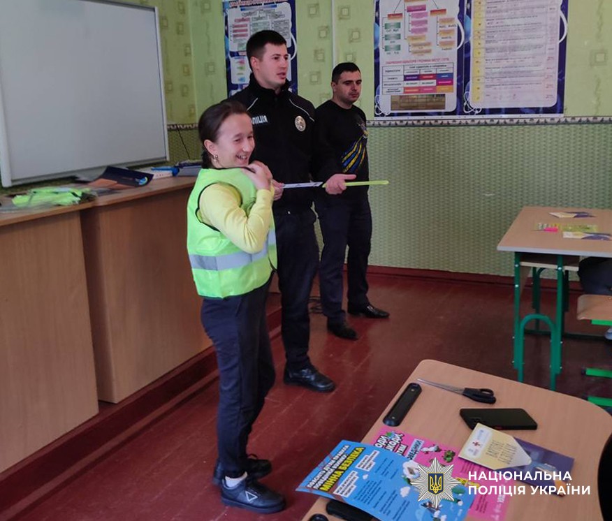 Під час спілкування з учнями нагадали про важливість дотримання правил дорожнього руху, зокрема використання світловідбивних елементів у темну пору доби чи у разі погіршення погодних умов.