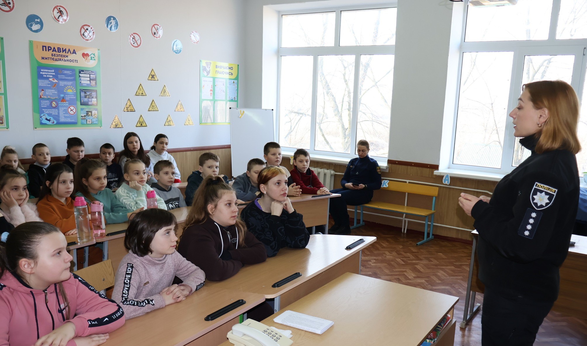 Ювенальна поліцейська та представниця Державної служби з надзвичайних ситуацій спілкувалися з учнями про правила безпечної поведінки.