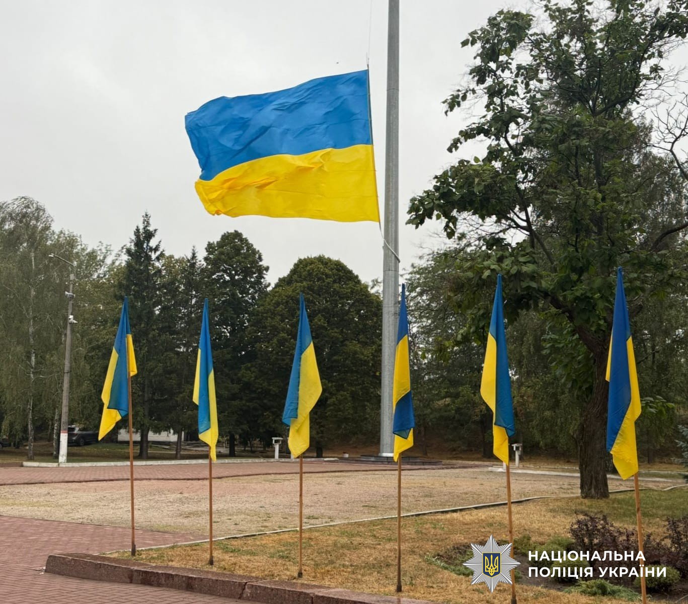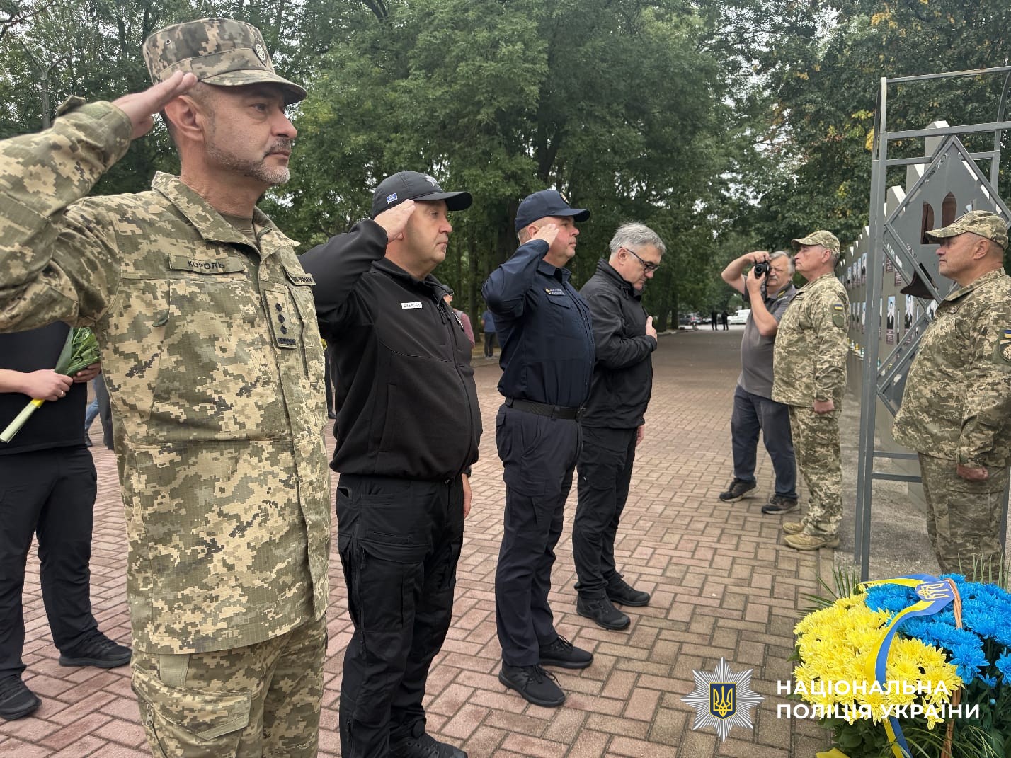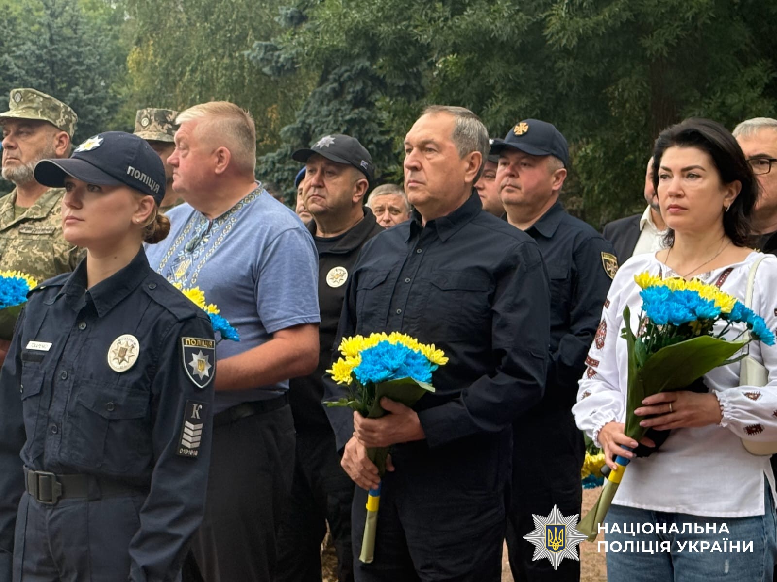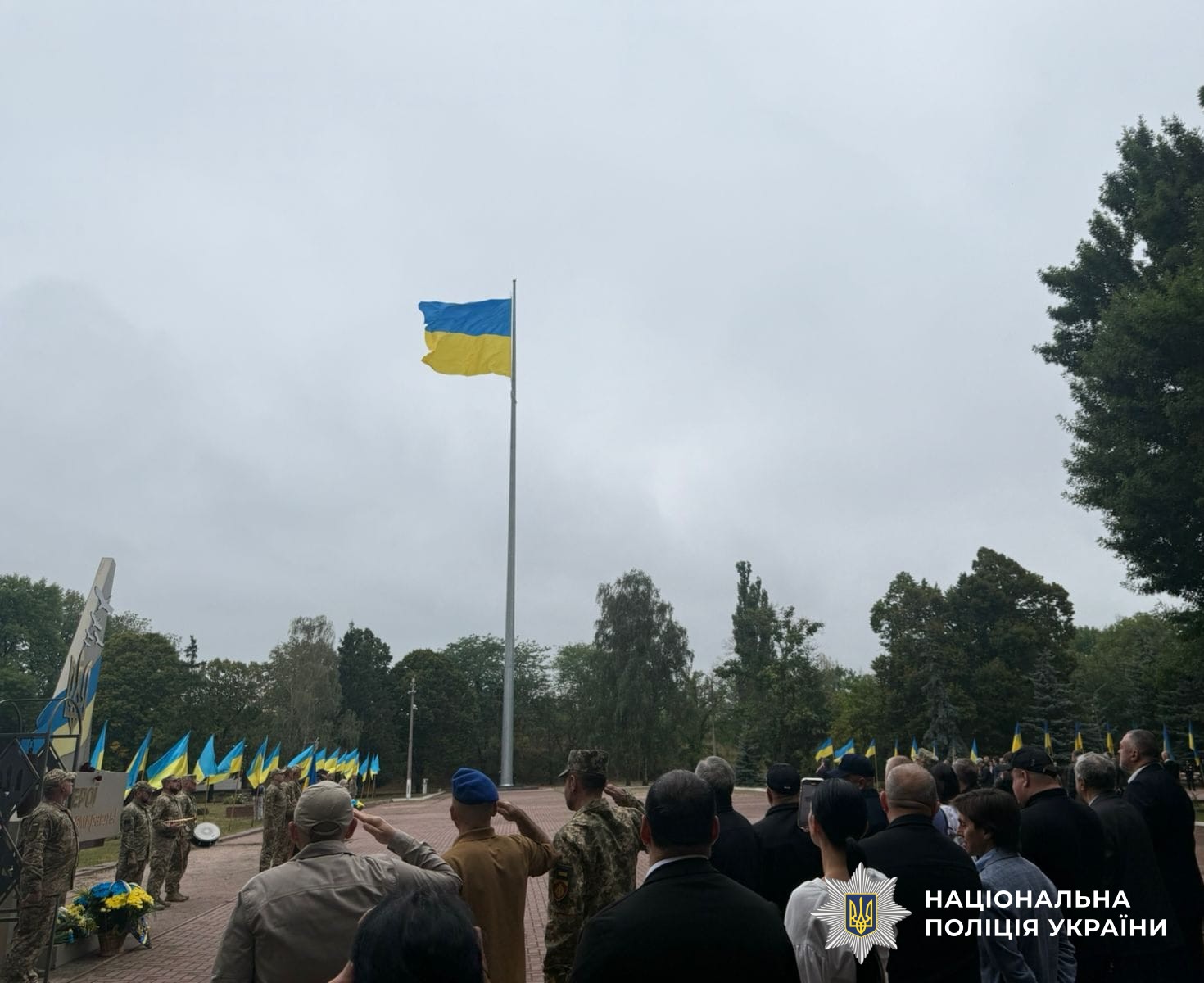 Правоохоронці поклали квіти до пам'ятних знаків та вшанували загиблих хвилиною мовчання, а також взяли участь у церемонії підняття Державного Прапора України.