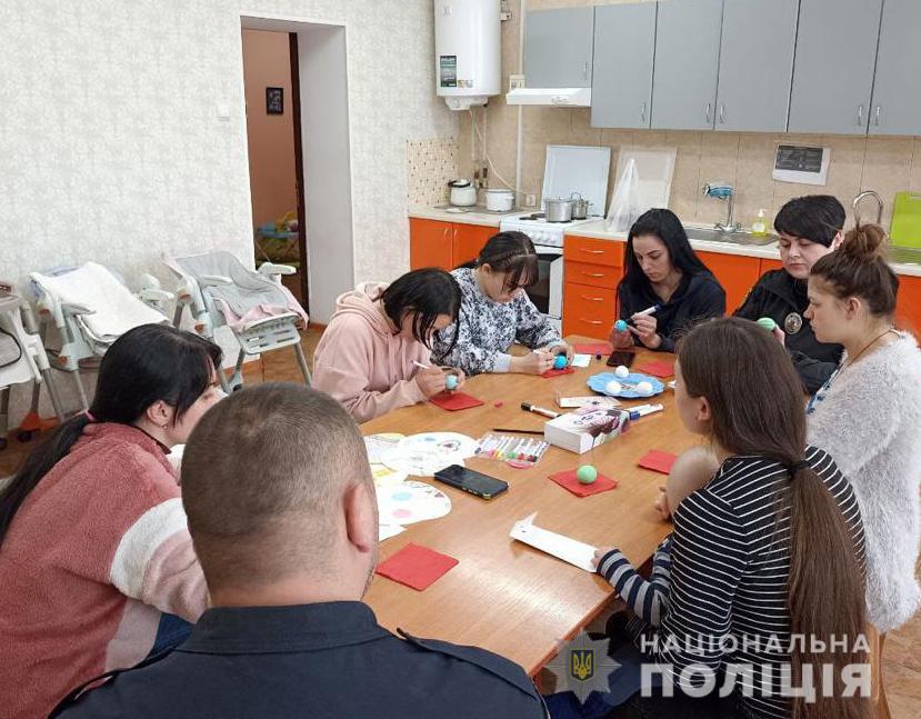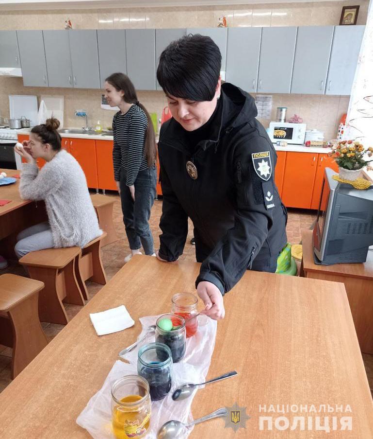 Поліцейські разом з мешканками соцзакладу та малечею розфарбували писанки до Великодня
