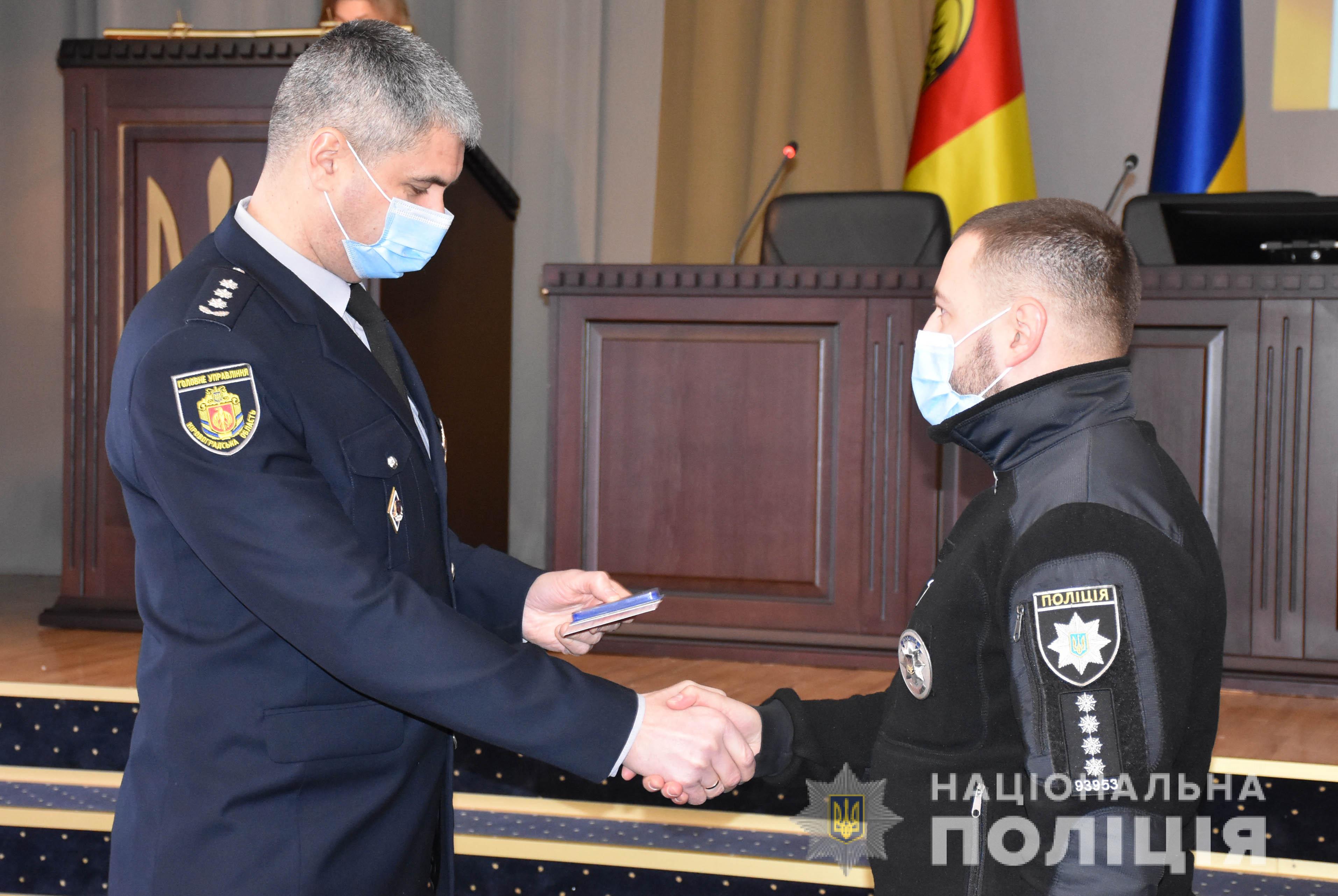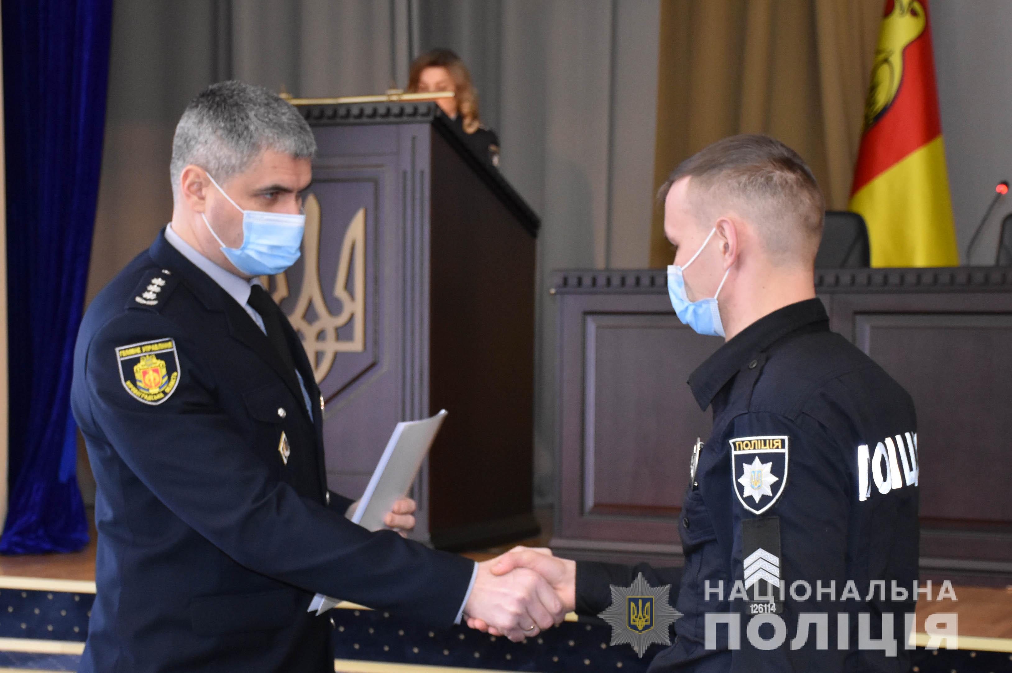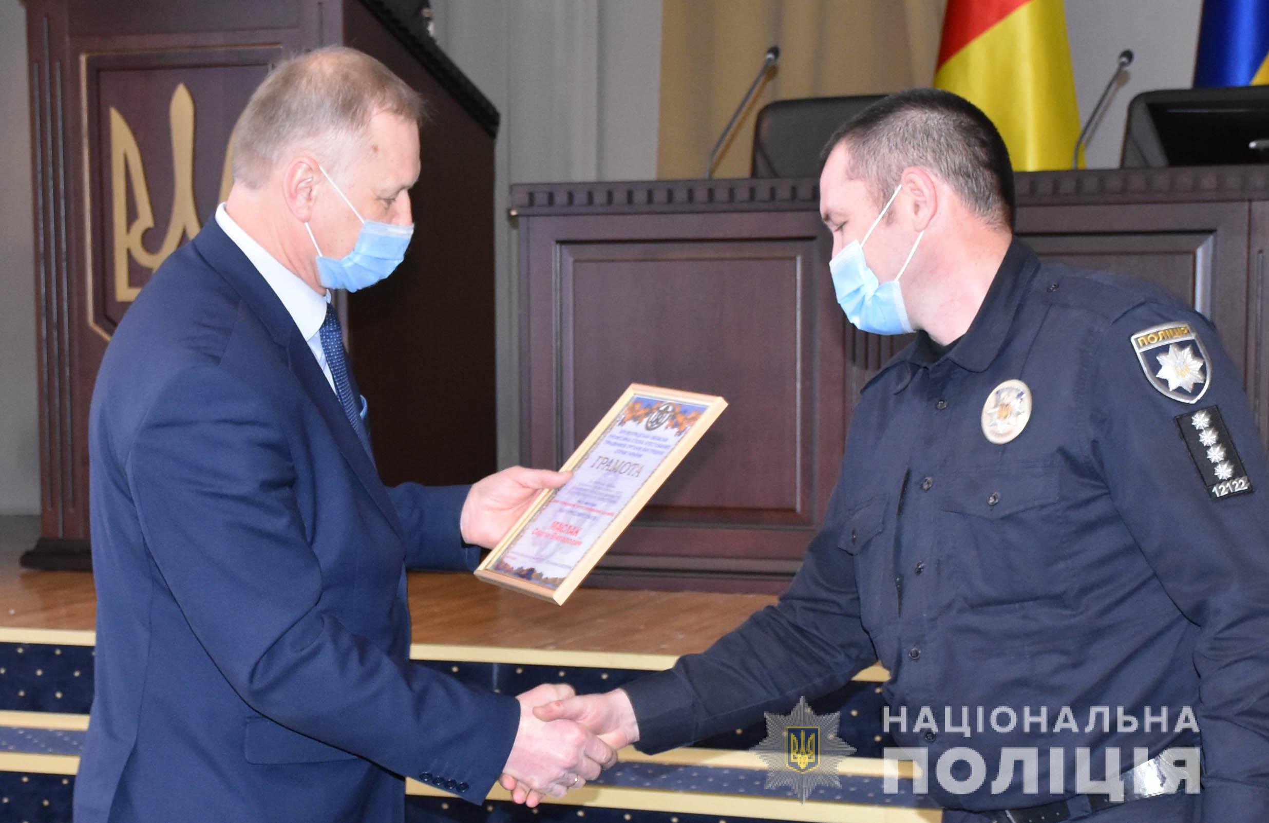 Голова обласної профспілкової організації атестованих працівників органів внутрішніх справ Валерій Шевчук долучився до вітань та вручив правоохоронцям грамоти профспілки.