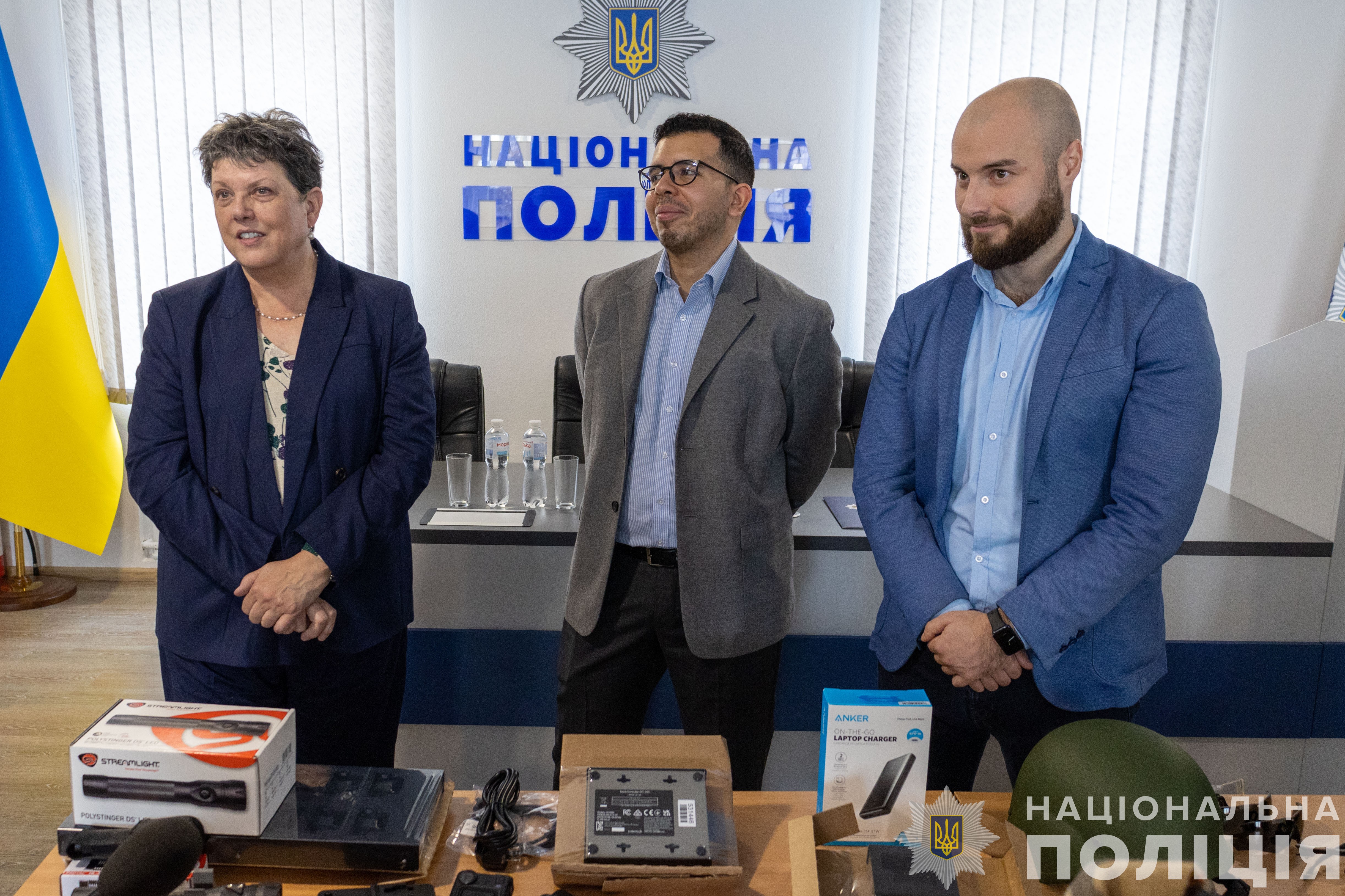 Пакет технічної допомоги сьогодні, 5 листопада, українським правоохоронцям передали представники Посольства Сполучених Штатів Америки в Україні у рамках проєкту міжнародної технічної допомоги «Посилення спроможності Національної поліції України у боротьбі з вторгненням російської федерації».
