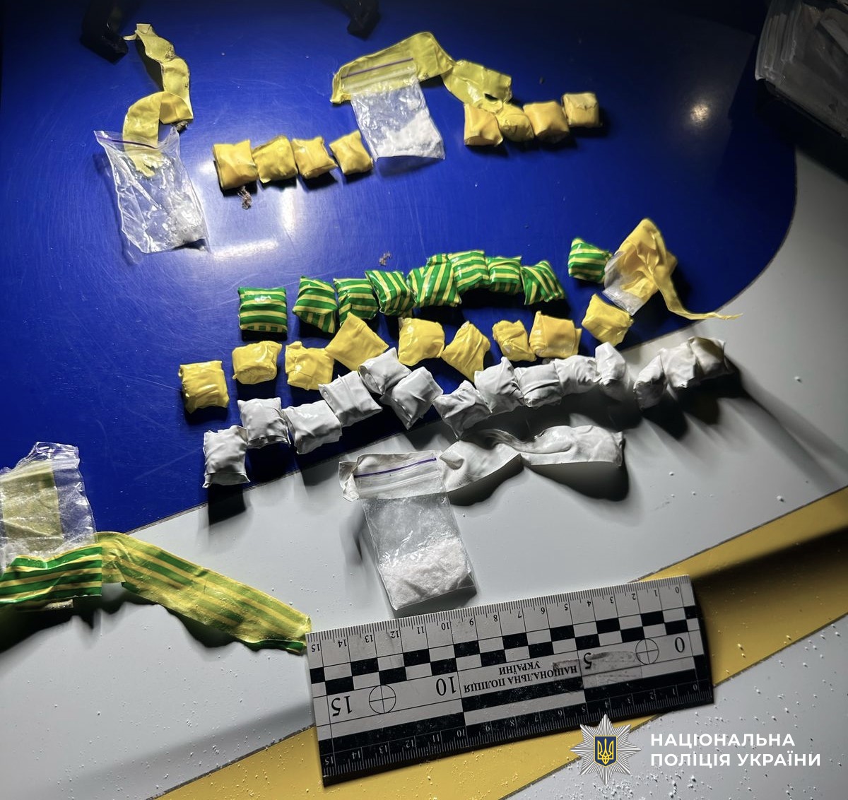 Під час поверхневої перевірки у кропивничанина виявили та вилучили 45 згортків із наркотичним засобом Альфа PVP. Зловмисника затримано у порядку ст. 208 Кримінального процесуального кодексу України.