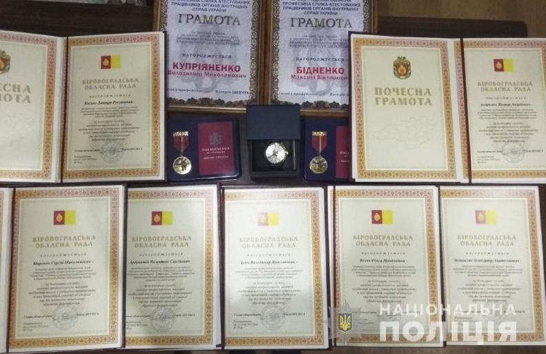 Під час зустрічі у Кропивницькому поліцейські отримали заохочення від голови Кіровоградської обласної ради Сергія Шульги, керівництва главку поліції області та голови обласної профспілкової організації атестованих працівників органів внутрішніх справ.