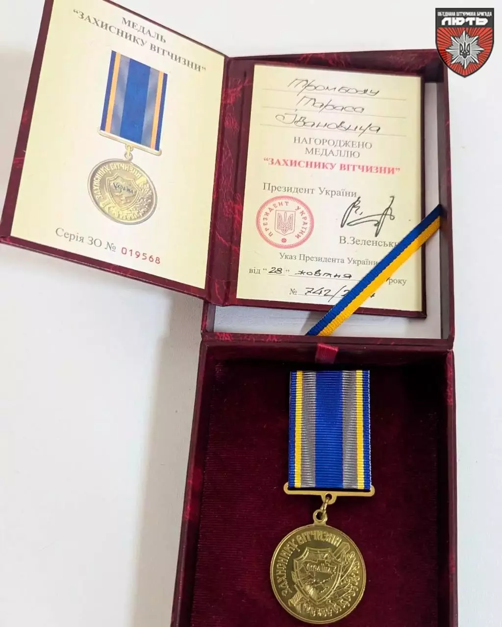 Державну нагороду «Захисник Вітчизни» отримав і воїн штурмового батальйону «Тавр» бригади Нацполіції «Лють» Тарас Тромбола на псевдо Марадонна.