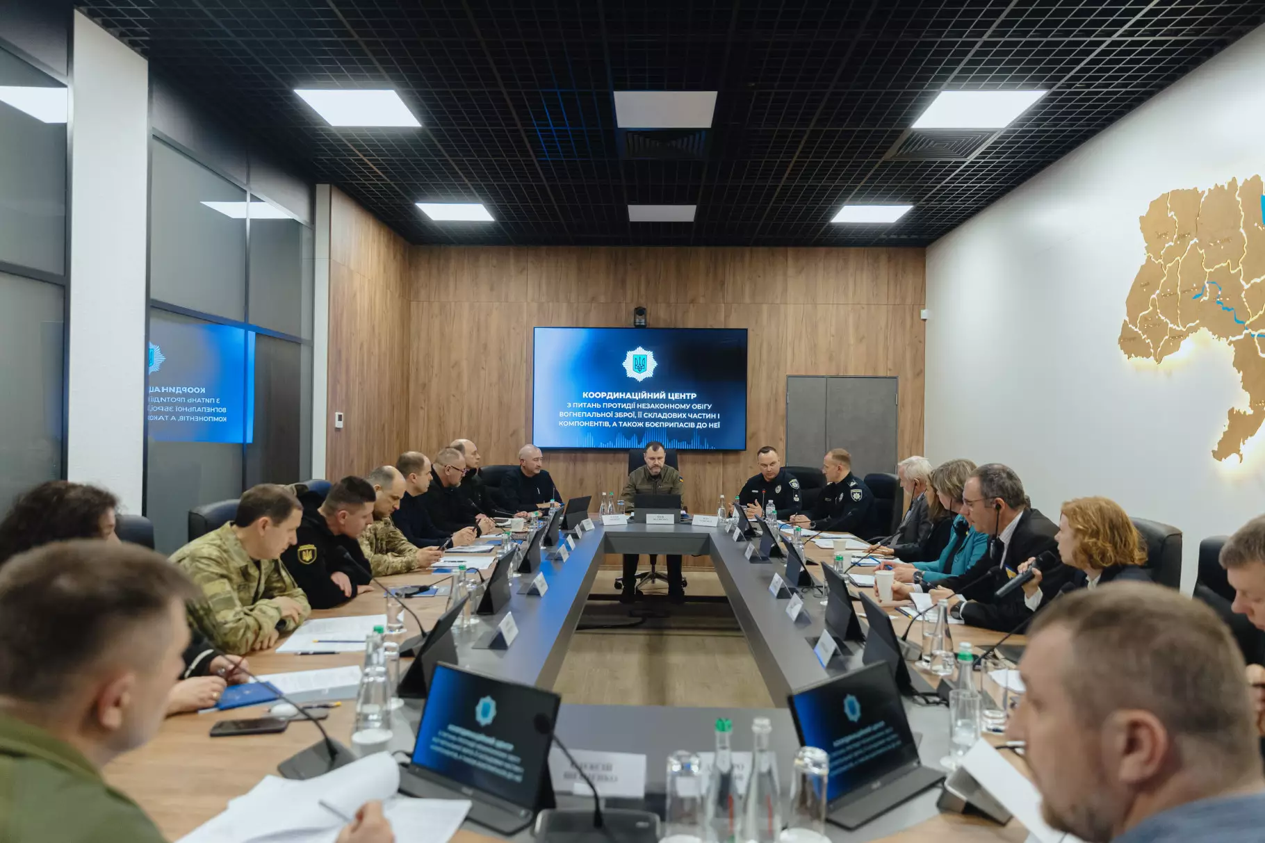 6 лютого 2025 року під головуванням Міністра внутрішніх справ України Ігоря Клименка відбулося установче засідання Координаційного центру з питань протидії незаконному обігу вогнепальної зброї, її складових частин і компонентів, а також боєприпасів до неї.