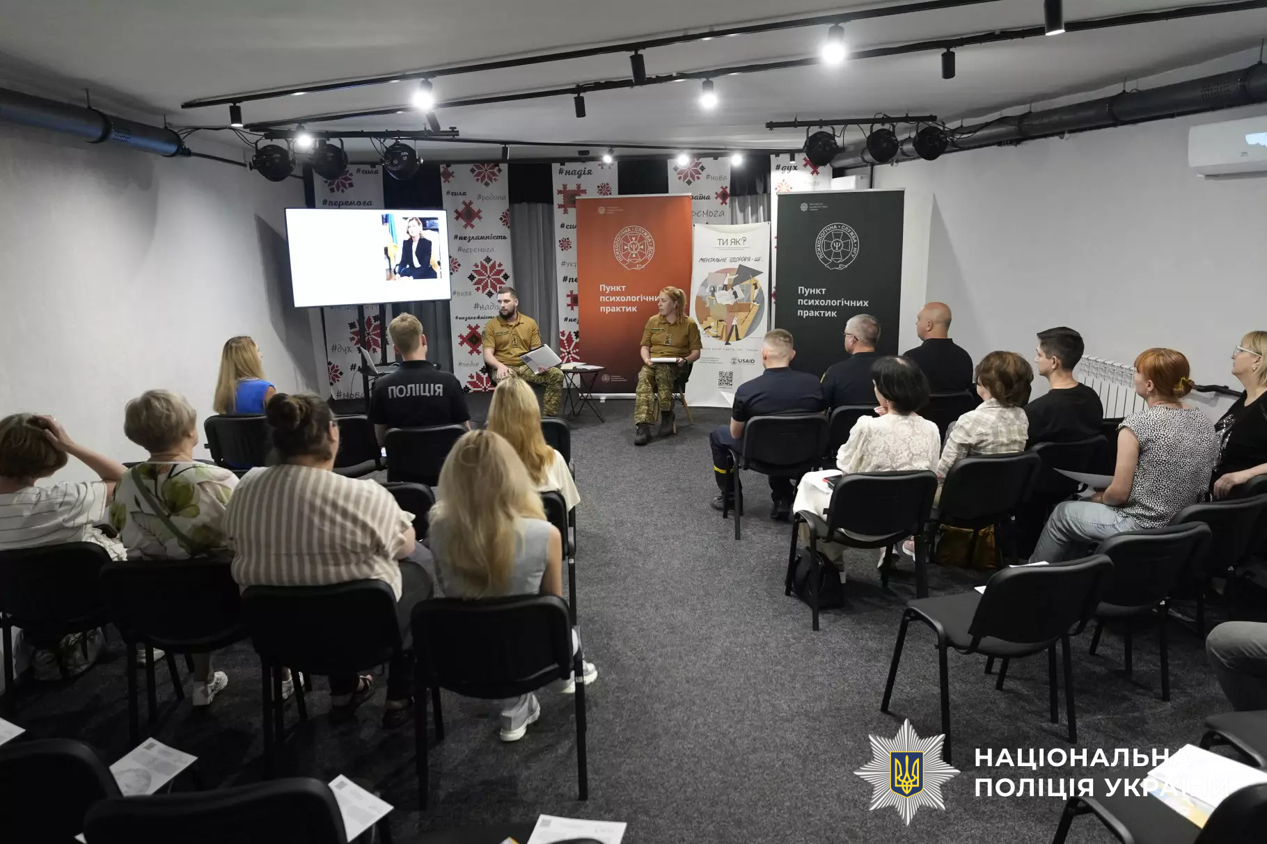 Психологи МВС роз’яснили, як реагувати на тривогу, яким має бути алгоритм допомоги близьким під час кризових ситуацій, також розповіли про правила поведінки під час ворожих обстрілів. Торкнулися питання мінної та пожежної безпеки. Представили власні програми підтримки ветеранів та ветеранок, а також особового складу - як успішний приклад протидії професійному вигоранню у великих колективах. І все це спільно з «Ти як?»