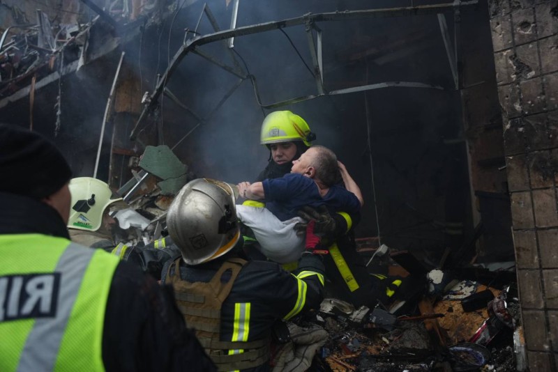 Київ. Оперативні служби працюють у 6-ти районах, де виникли 7 пожеж: Оболонському, Печерському, Подільському, Соломʼянському, Святошинському та Деснянському. Із багатоповерхівки в Соломянському районі евакуйовано понад 130 людей. Близько 20 врятовано надзвичайниками із заблокованих приміщень. Загалом у столиці зафіксовано понад 20 поранених.