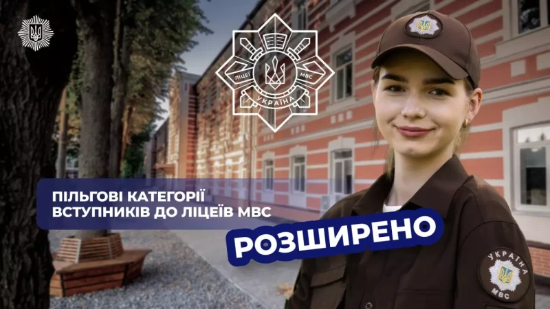 Відтепер навчатися в ліцеях МВС зможуть також діти, чиї піклувальники, один із прийомних батьків, батьків-вихователів, рідні брати або сестри загинули, зникли безвісти за особливих обставин, потрапили в полон або отримали інвалідність внаслідок травми чи хвороби під час виконання службових обов’язків.