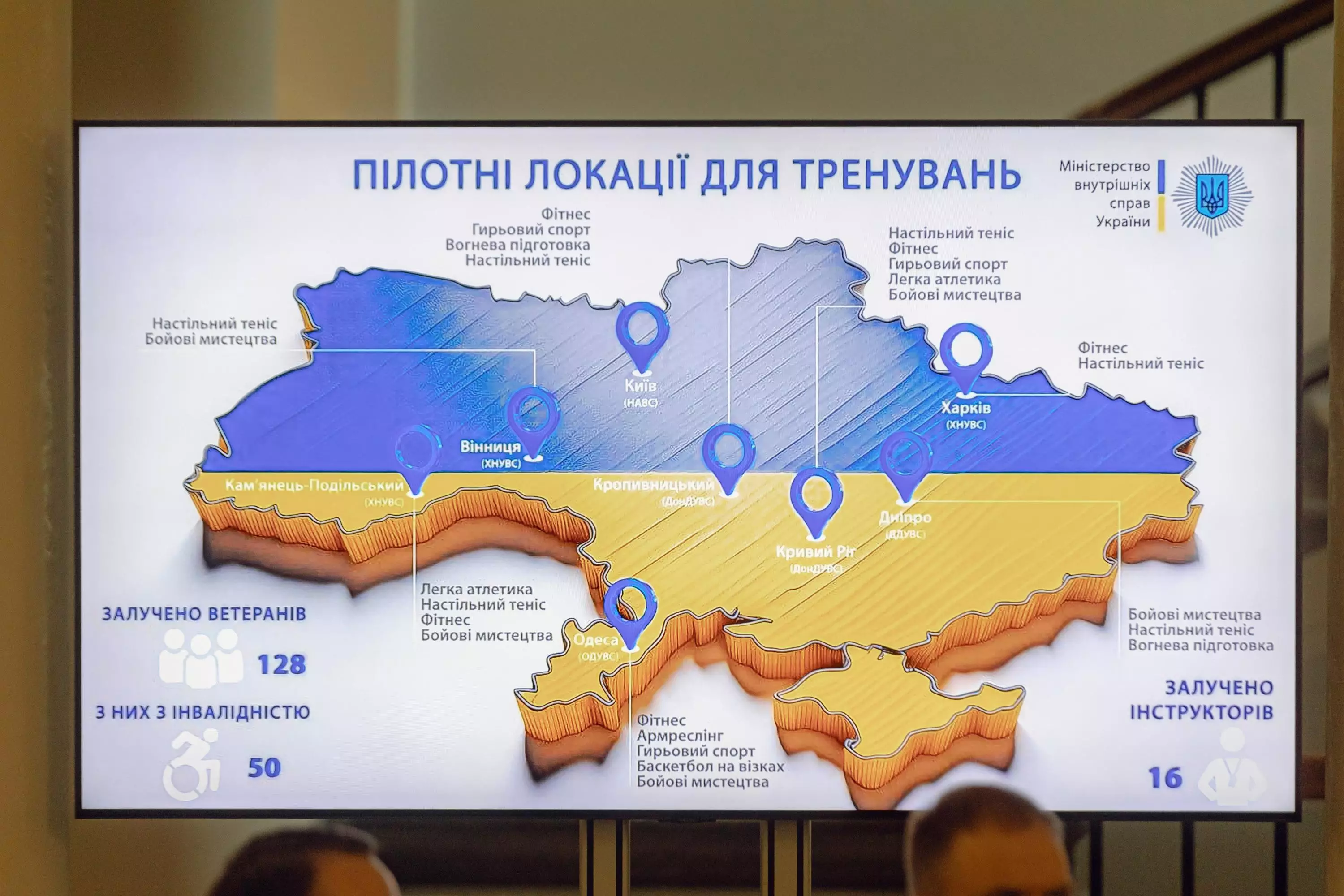 Також він повідомив, що визначено 8 спортивних локацій у закладах вищої освіти із специфічними умовами навчання, що належать до сфери управління МВС, для тренувань з ветеранами в різних куточках України. До занять вже залучено 128 ветеранів війни, з них 50 людей з інвалідністю: