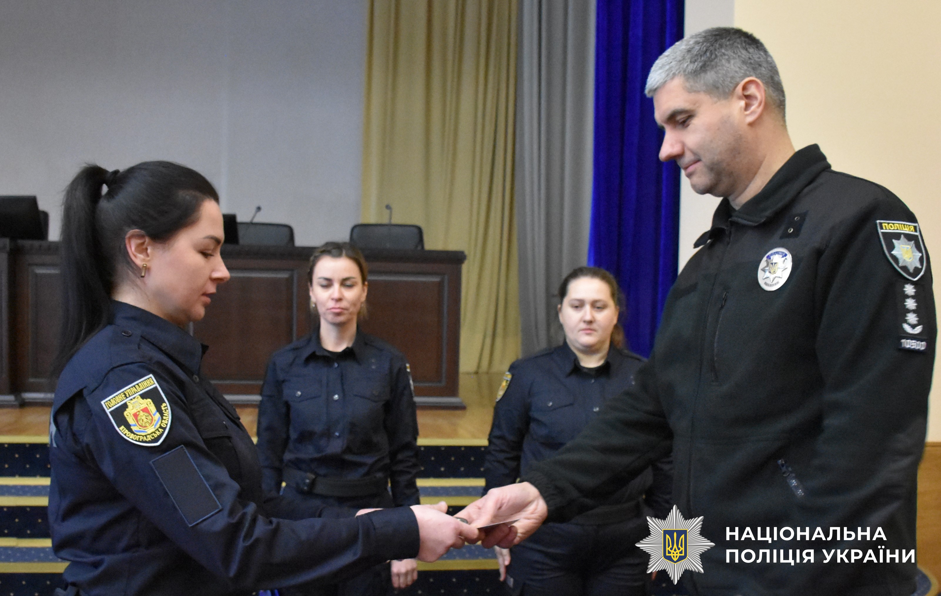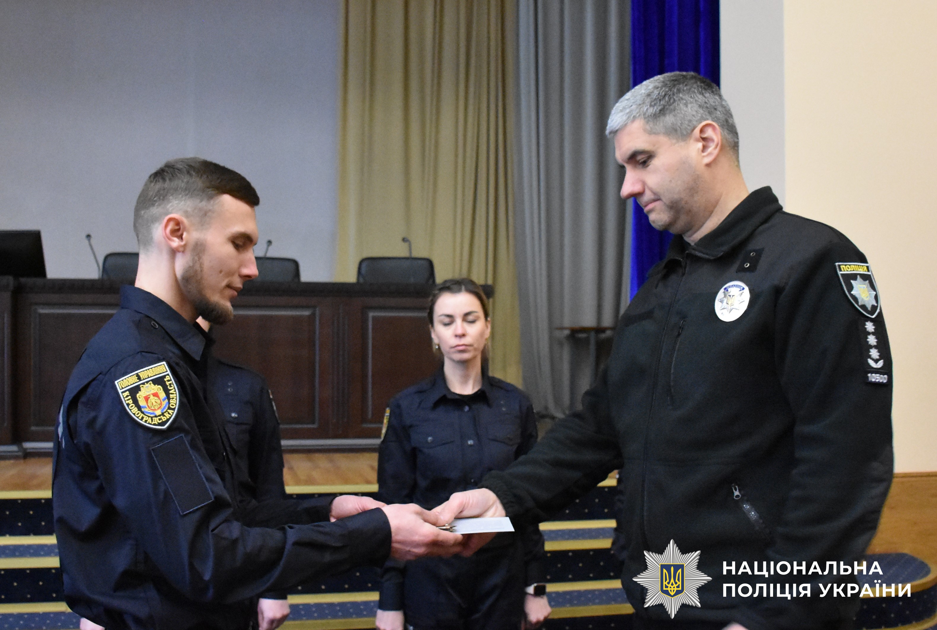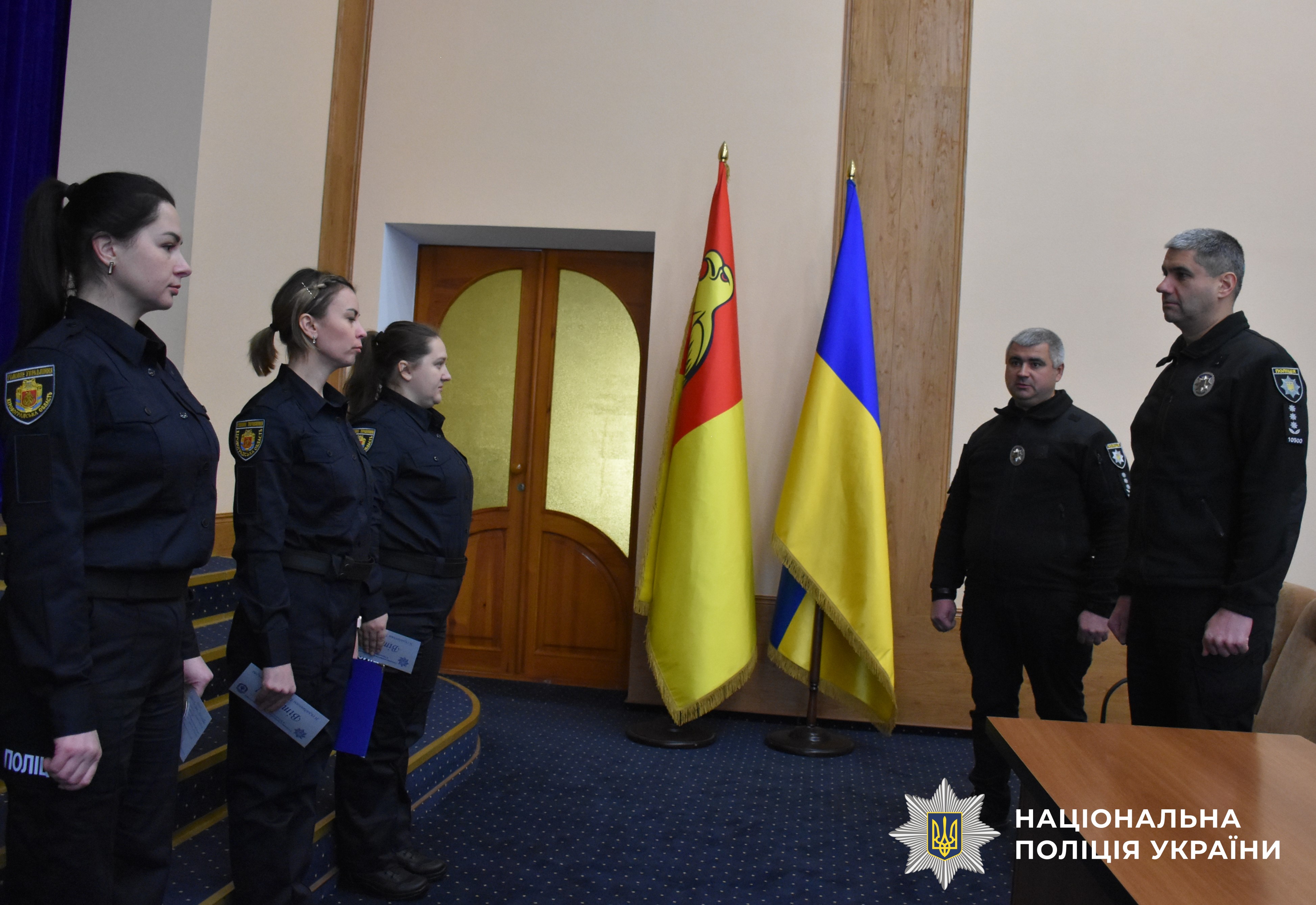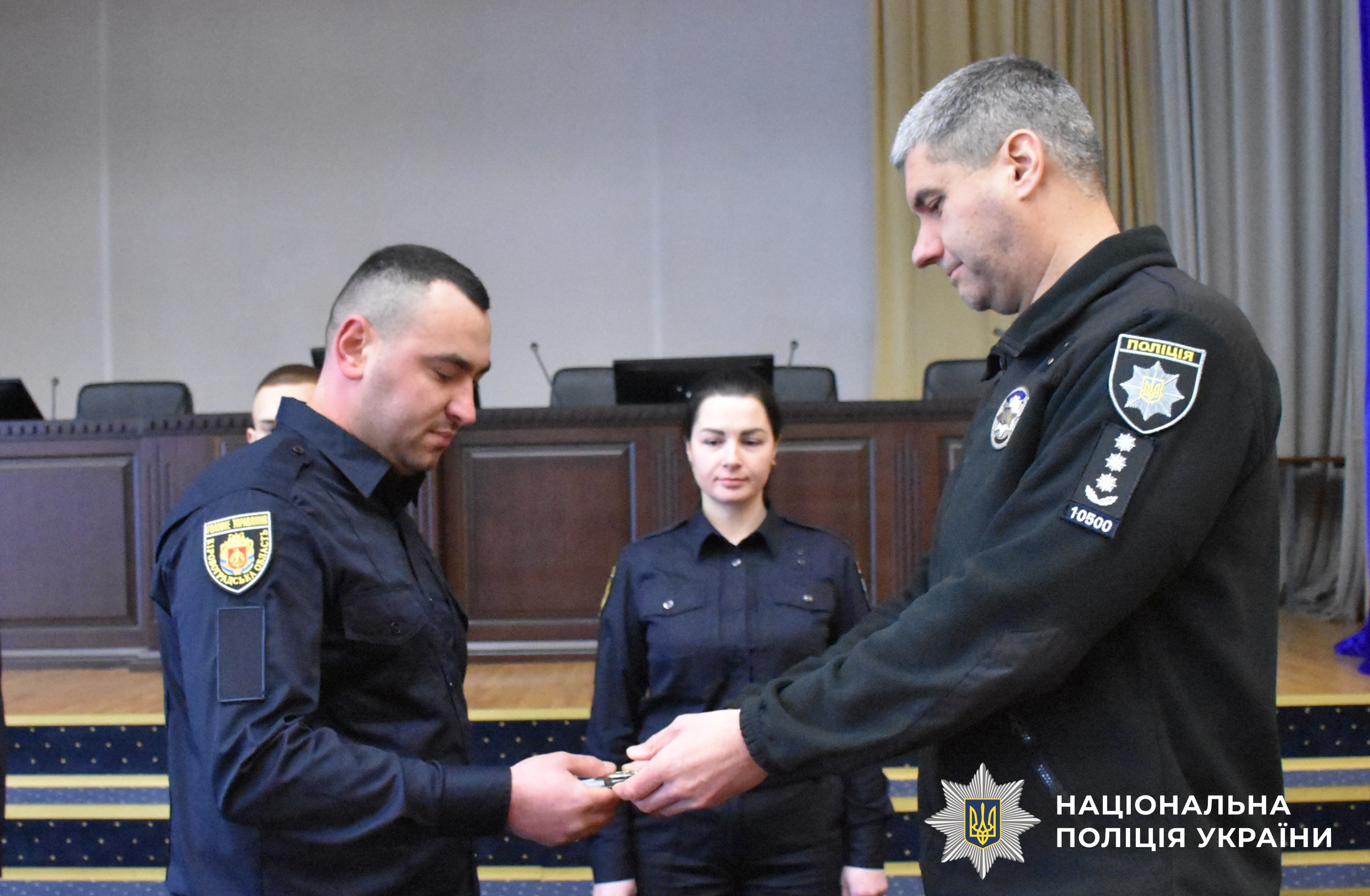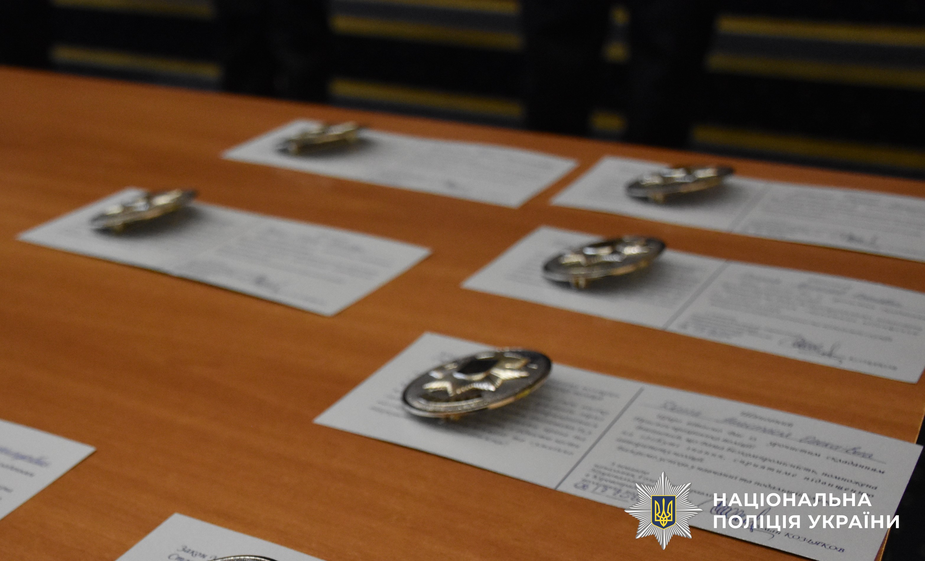 Керівник обласного главку відомства Роман Козьяков та його заступник Сергій Котига побажали правоохоронцям сумлінно виконувати службові обов’язки, поглиблювати знання та практичні навички, необхідні для забезпечення правопорядку, захисту прав громадян та інтересів держави. Кожному поліцейському очільник ГУНП вручив жетон.