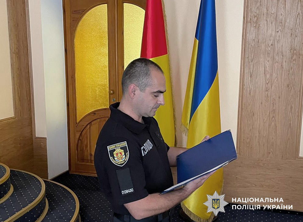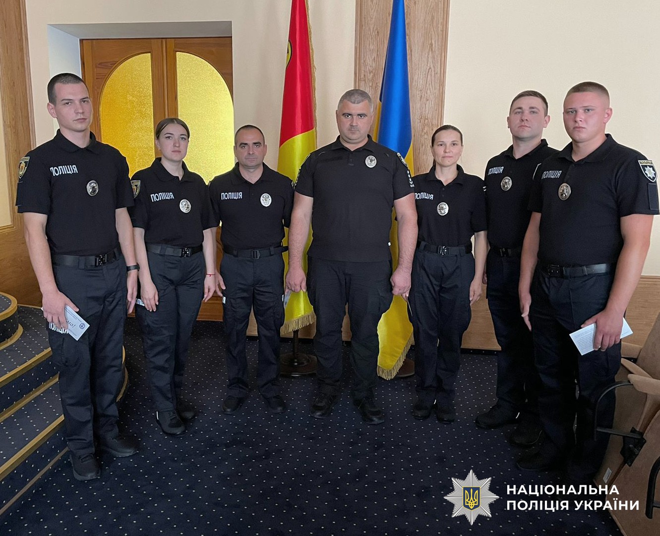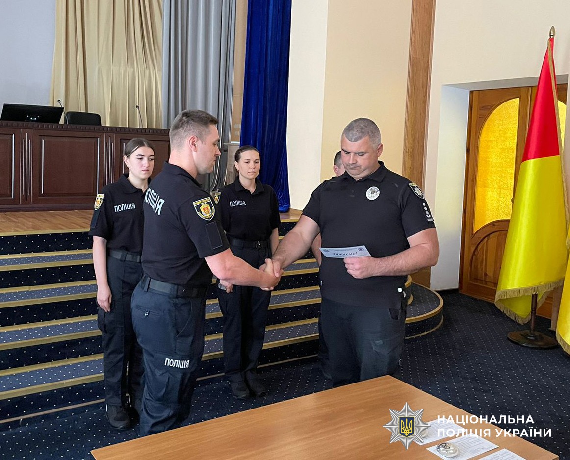 Заступник керівника відомства Сергій Котига вручив кожному поліцейському жетон. Побажав ефективно працювати над вдосконаленням свого професійного рівня та у подальшому сумлінно виконувати службові обов’язки.
