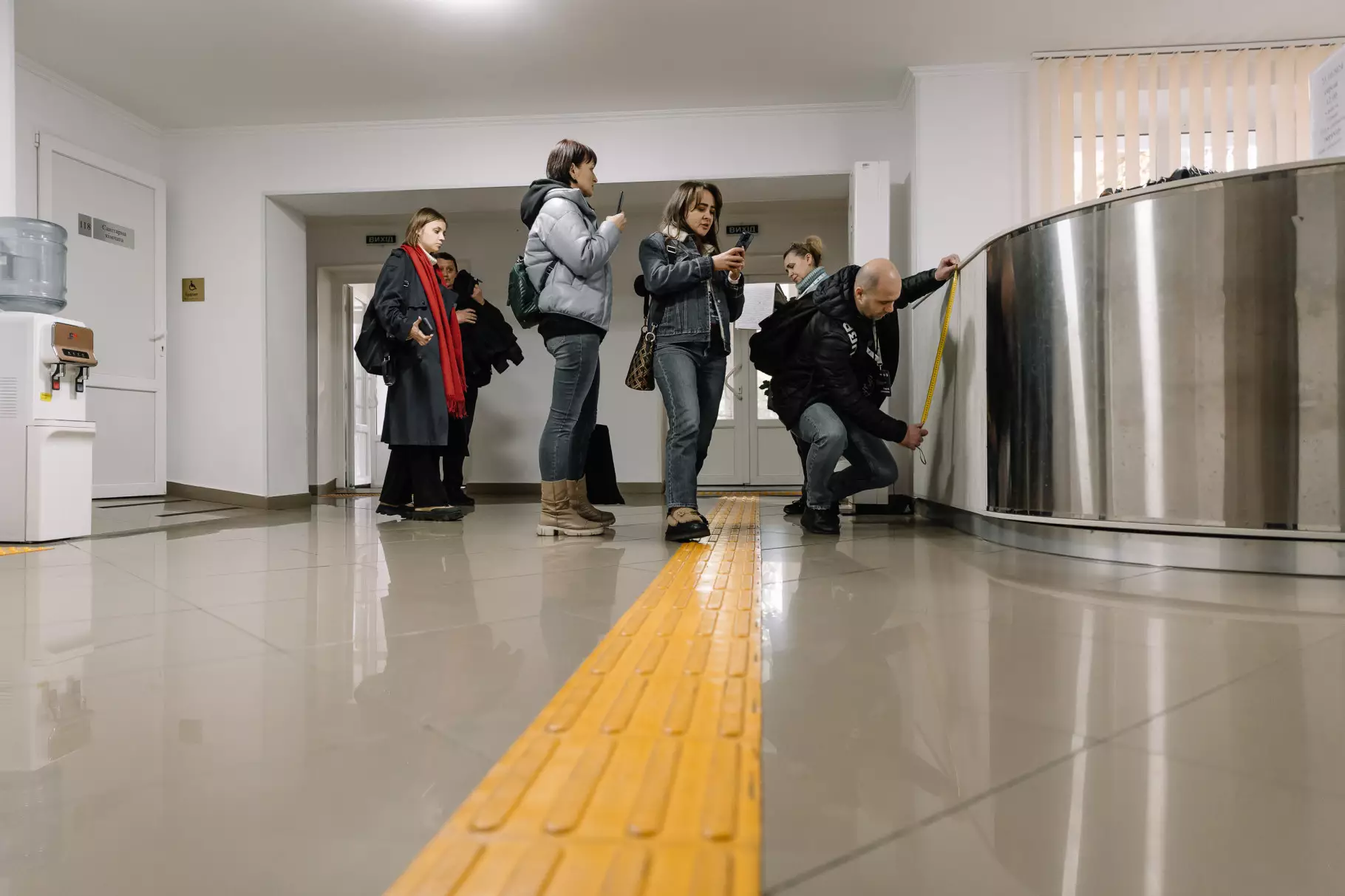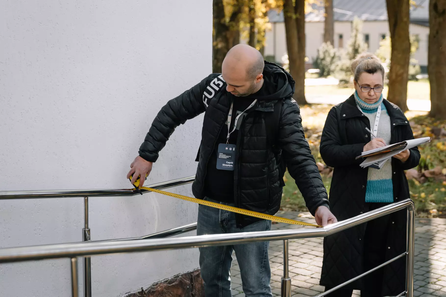 20 учасників розділилися на чотири групи та дослідили на безбар’єрність маршрут пацієнта в одному з реабілітаційних медичних закладів Київщини: зупинку громадського транспорту, вхід до центру, адміністративний та лікувально-реабілітаційні корпуси, їдальню, будинок культури, сауну, укриття, зони відпочинку.
