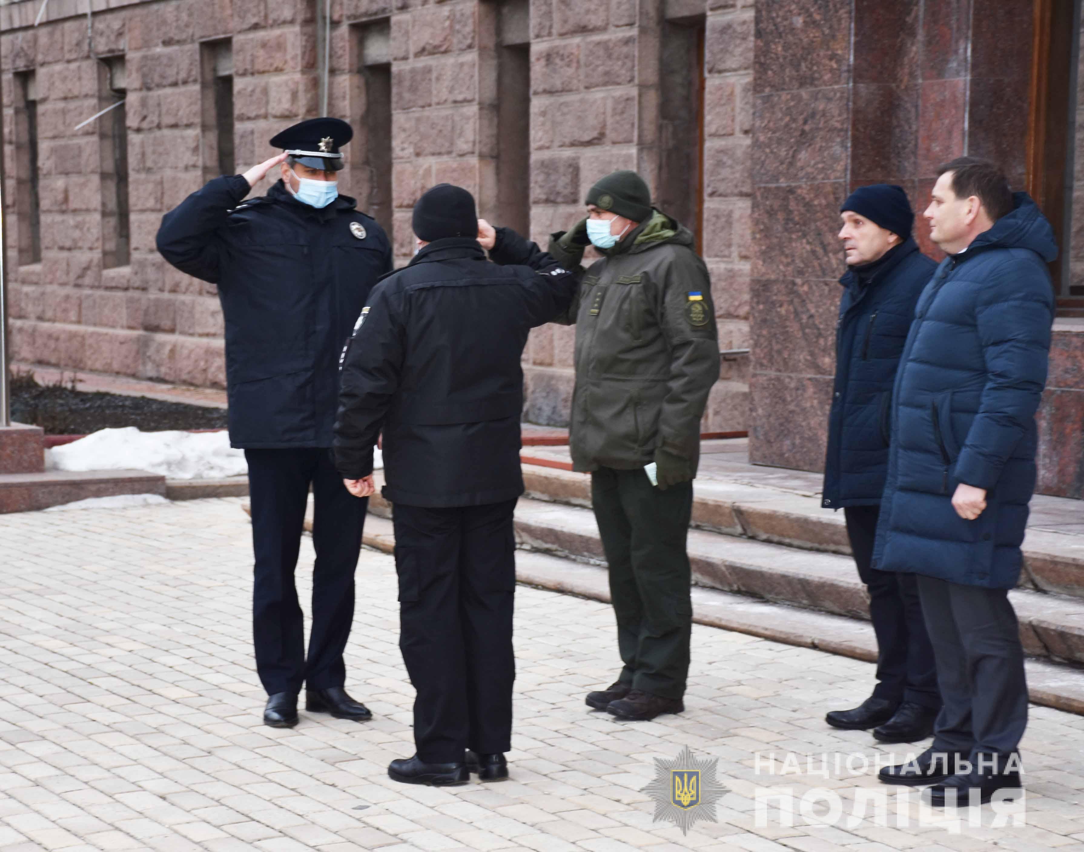 Захід відбувся сьогодні, 13 січня, на площі Героїв Майдану в обласному центрі. У ньому взяли участь начальник Головного управління Нацполіції в області Роман Козьяков, заступник голови Кіровоградської облдержадміністрації Андрій Лісота, керівний склад військової частини 3011 Національної гвардії України та Кропивницького районного управління поліції.