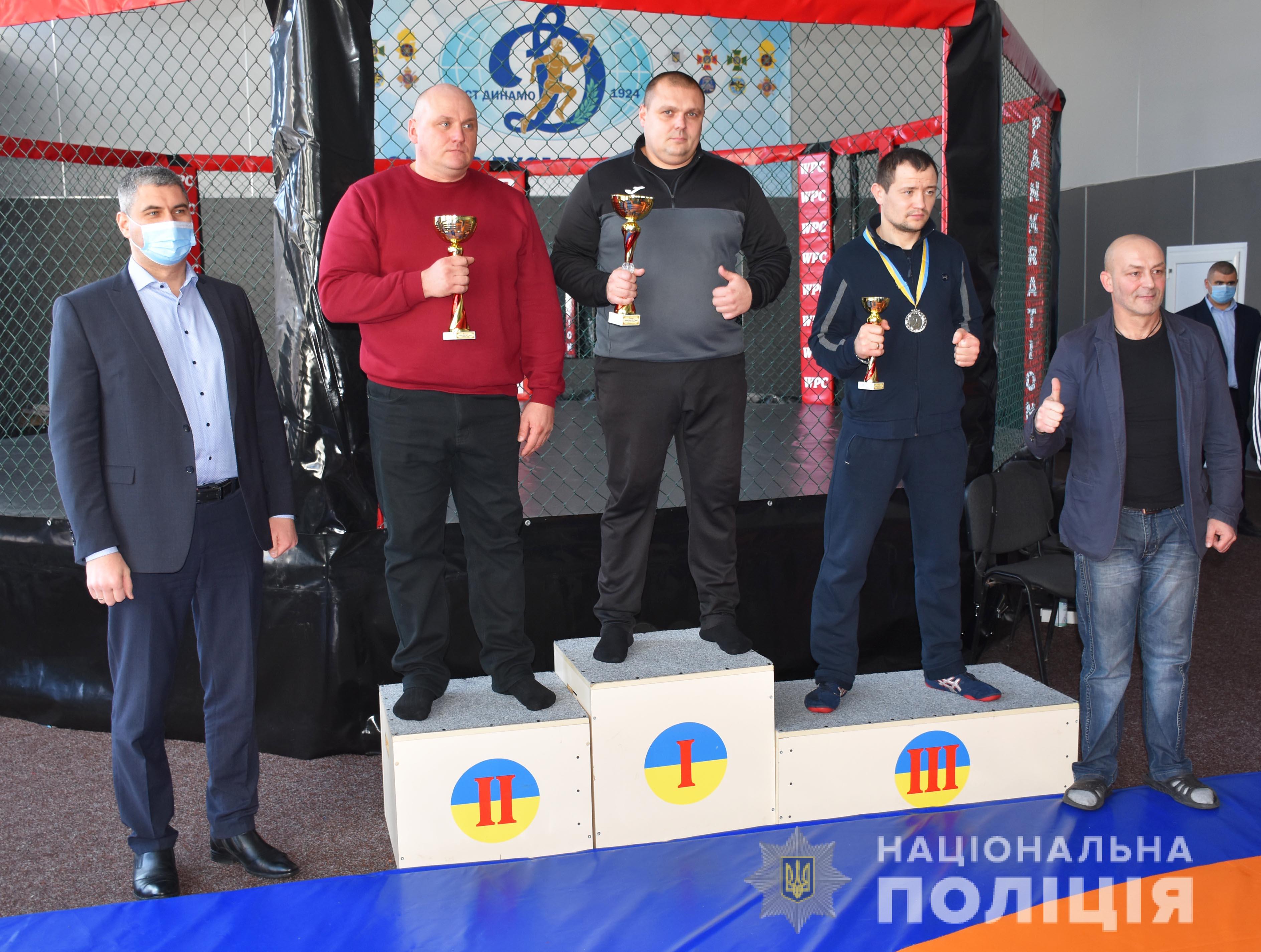 В особистому заліку перемогу з числа поліцейських здобули: Сергій Вака (у ваговій категорії 57 кг) Руслан Заторський (68 кг), Олександр Гайдиш (67 кг), Богдан Прозоров (74 кг), Роман Майнич (82 кг), Володимир Красюк (90 кг), Анатолій Бондаренко (100кг) та Віктор Андрієнко (понад 100кг).