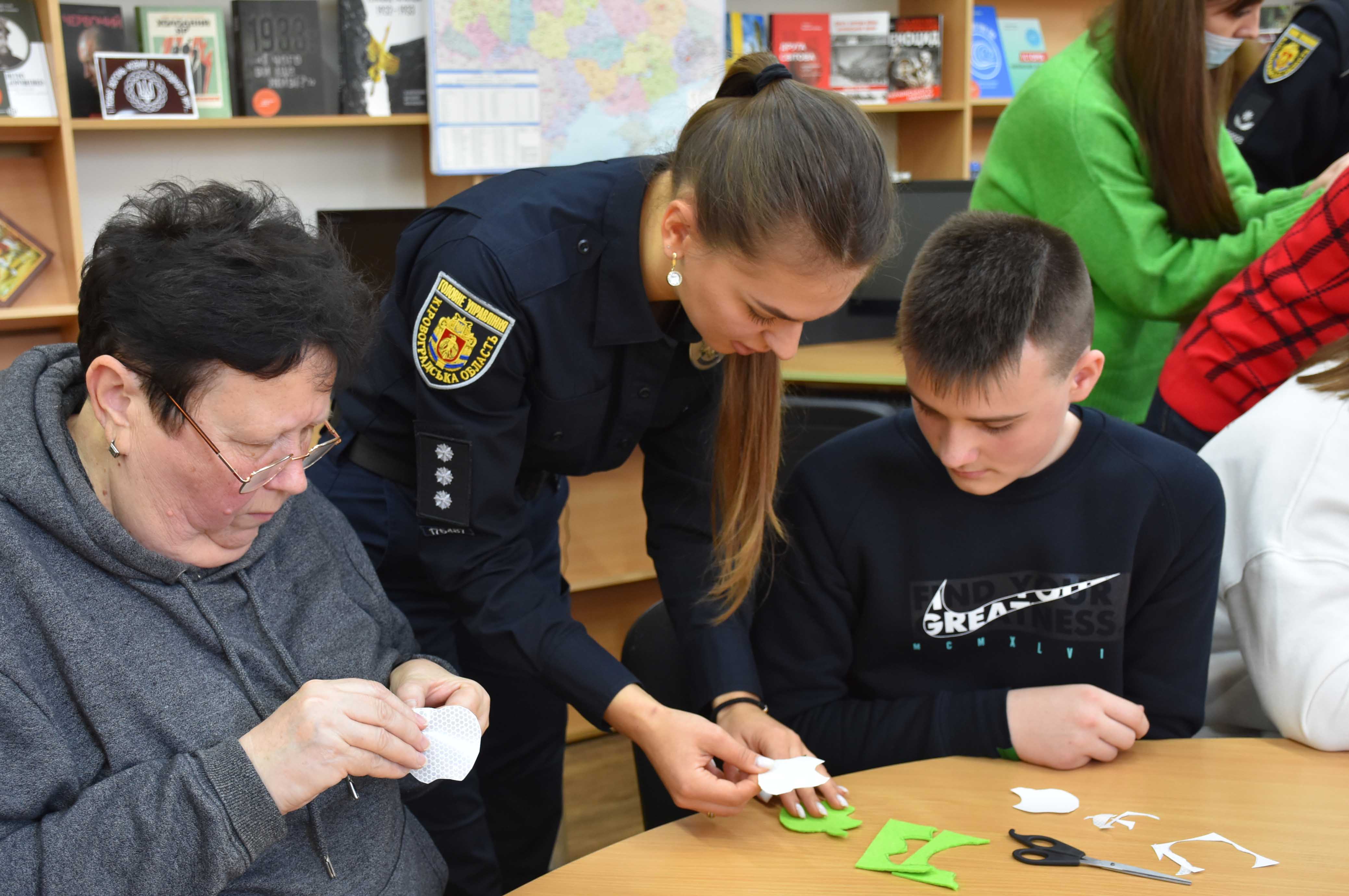 У рамках інформаційної кампанії «Будь видимим», в одній з міських бібліотек, правоохоронці спільно з представниками громадської організації «Агенція сталого розвитку «Хмарочос» організували роботу майстерні з виготовлення флікерів.