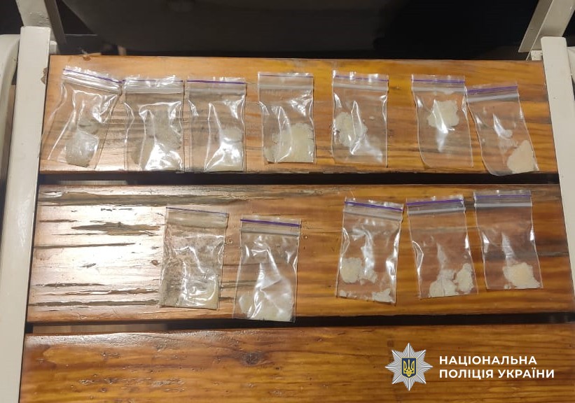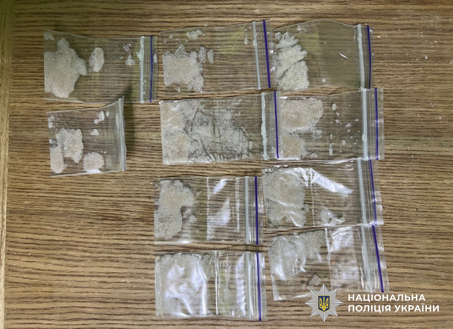 Із залученням кінолога зі службовим собакою та за силової підтримки спецпризначенців, за місцем проживання зловмисників було проведено обшуки. У результаті вжитих заходів виявлено та вилучено 30 зіп-пакетів із психотропною речовиною метамфетамін, грошові кошти, банківські картки та інші речові докази, які вказують на причетність осіб до вчинення правопорушень.