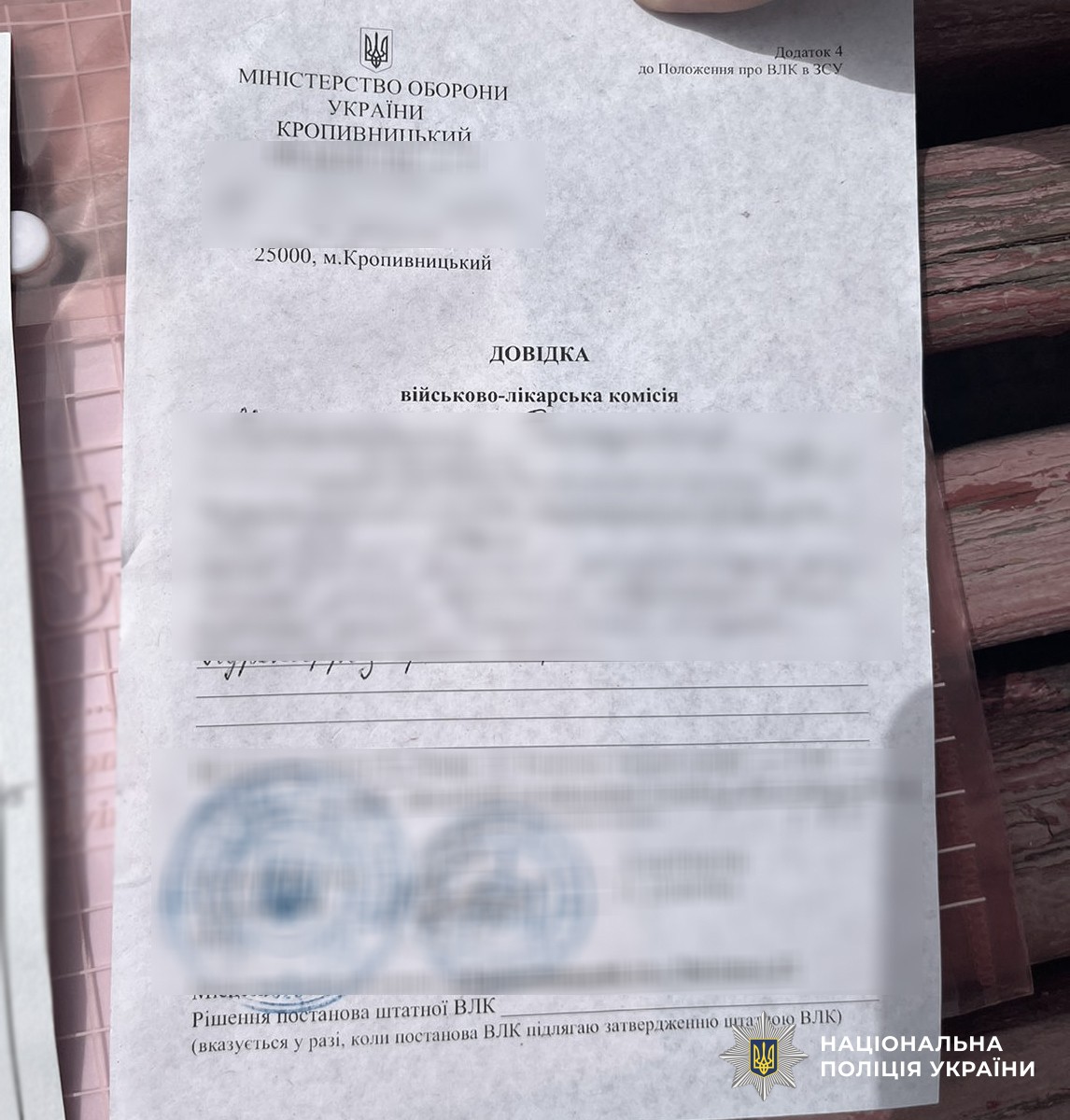 Встановлено, що житель Кропивницького за грошову винагороду у сумі 5 тисяч доларів США, шляхом виготовлення фіктивної документації про непридатність для проходження військової служби, сприяв незаконному переправленню осіб призовного віку через державний кордон України.