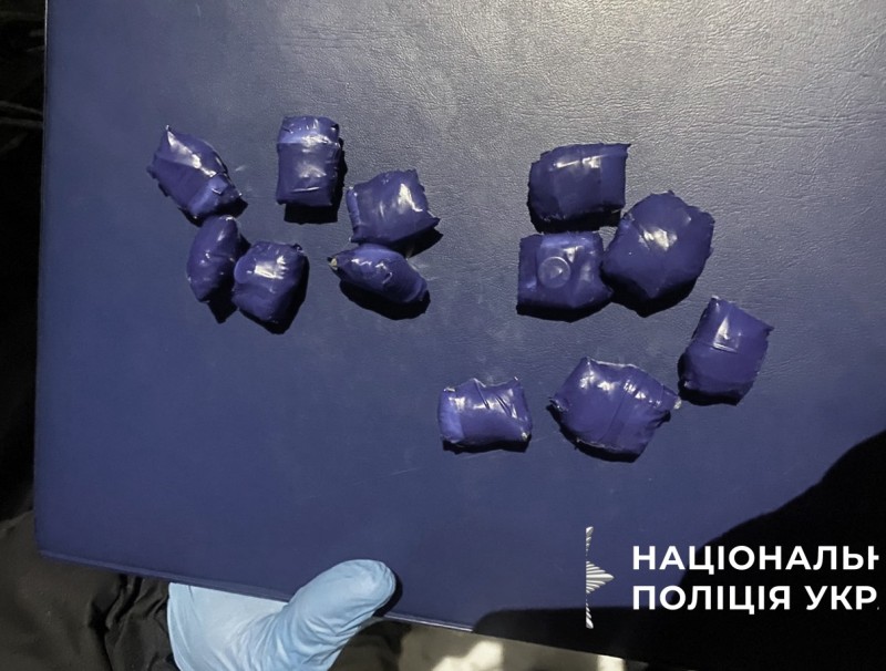 Під час поверхневої перевірки у перехожого правоохоронці виявили та вилучили 12 згортків, обмотаних липкою стрічкою, із наркотичним засобом – канабіс.
