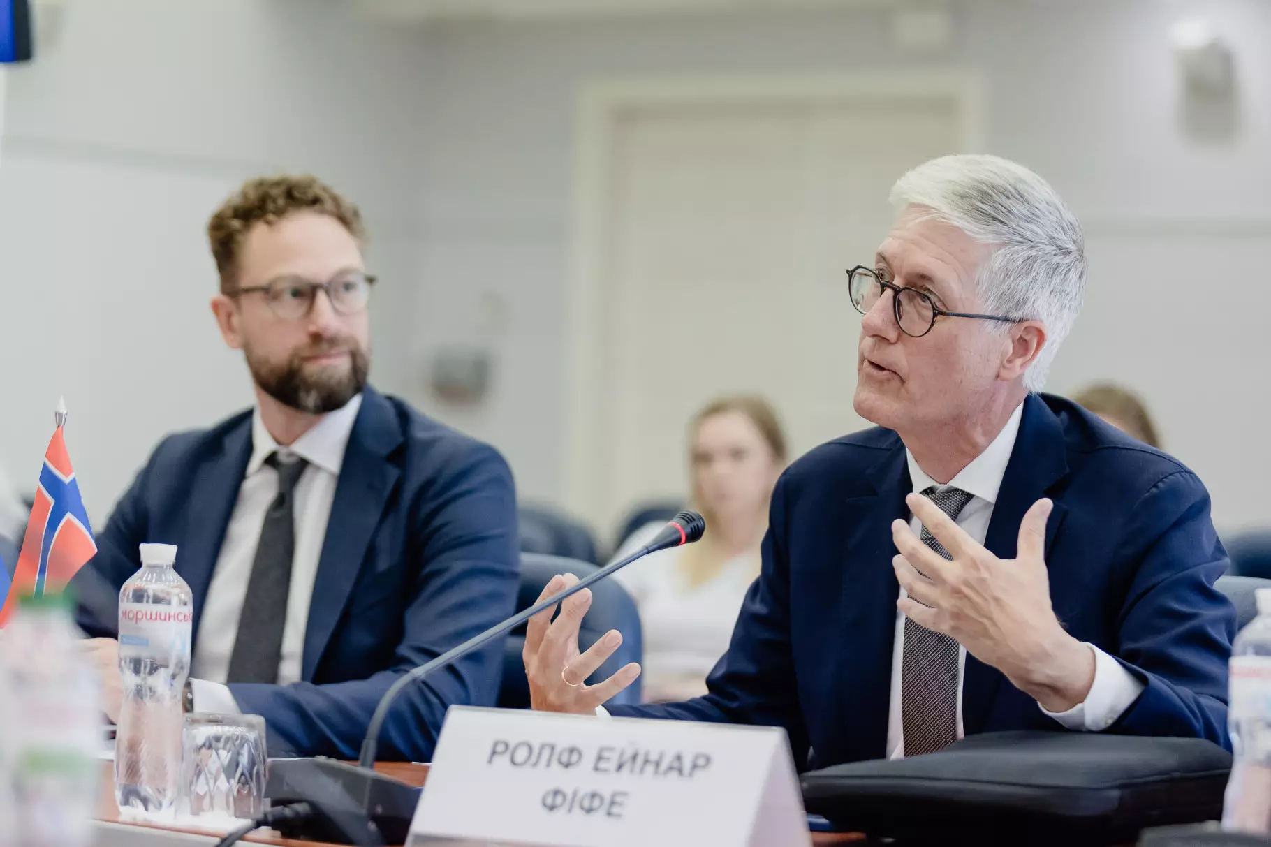 Іноземну делегацію очолили Каспер Андерссон – тимчасовий Повірений у справах Швеції в Україні, Ельза Хостад – посол Секретаріату Розбудови та Реконструкції України, Даніель Гронвіус – координатор проектів Шведської національна рада з питань торгівлі, Ролф Ейнар Фіфе – спеціальний радник Міністерства закордонних справ Норвегії, Йостейн Хоел – радник з питань політики Посольства Норвегії в Україні.