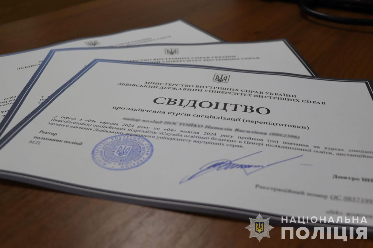 Понад 200 інспекторів служби освітньої безпеки після завершення спеціалізованого навчання у Львові, Києві, Одесі та Дніпрі поповнили лави поліцейських, які дбають про безпеку у школах.