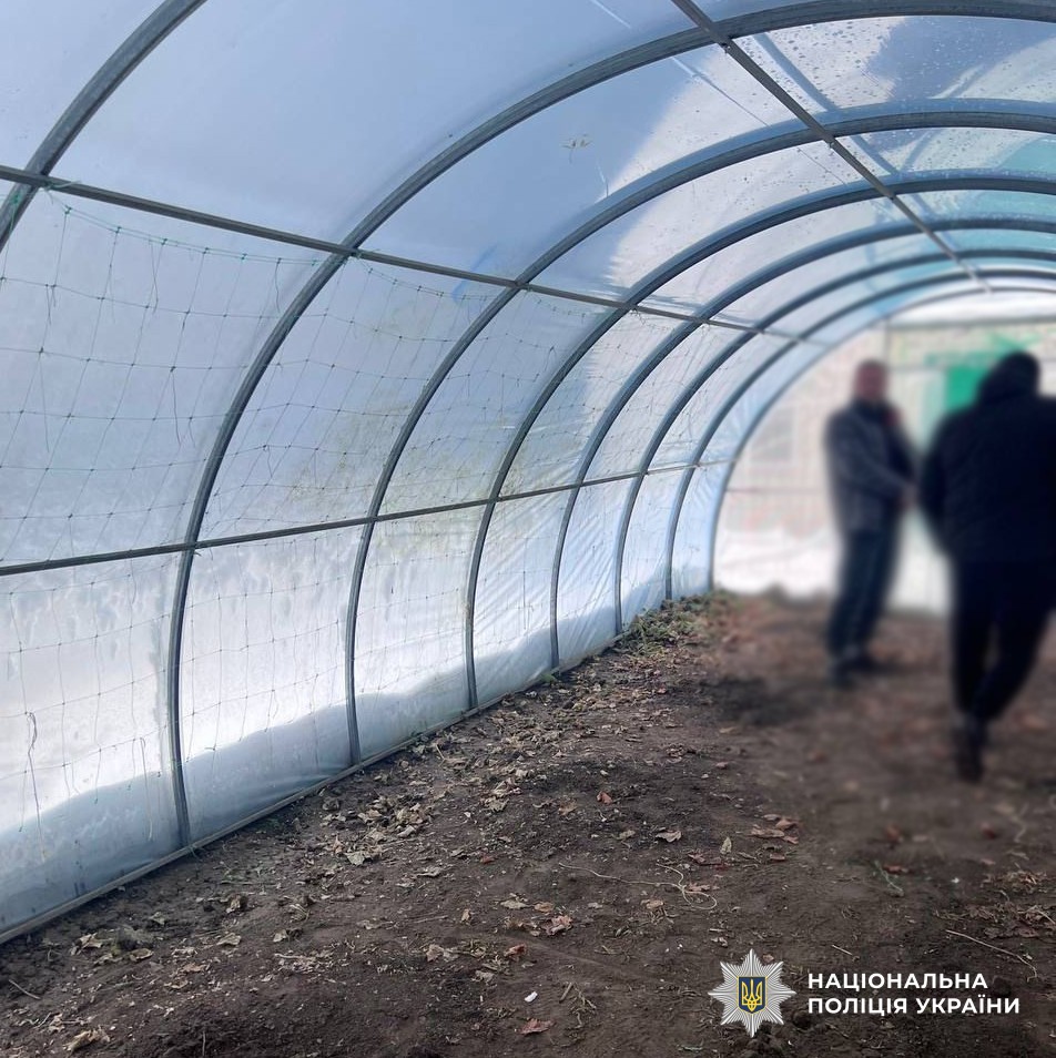 У результаті вжитих заходів правоохоронці виявили у дворі теплицю, а в господарській будівлі – близько 10 кілограмів канабісу та сухі гілки від рослин конопель. Крім того, у будинку виявили і вилучили грошові кошти, обріз гладкоствольної рушниці та набої 16-го калібру.