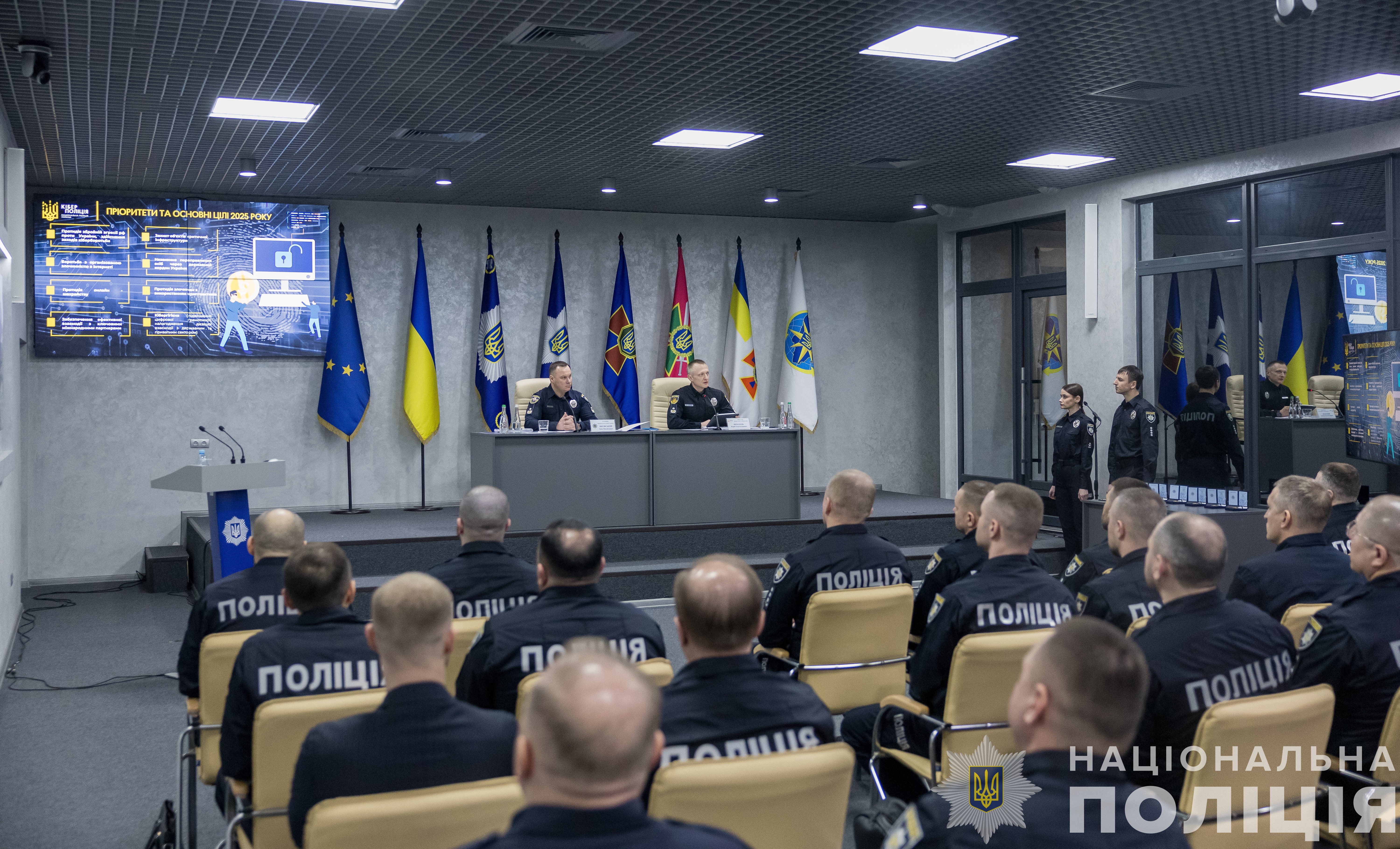 За результатами підсумків роботи Голова Нацполіції Іван Вигівський нагородив кращих співробітників Департаменту та обласних управлінь кіберполіції відомчими нагородами та спеціальними званнями.