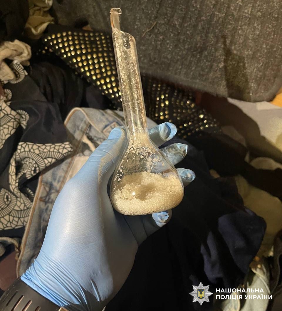 У результаті проведення обшуку домоволодіння місцевого мешканця правоохоронці виявили та вилучили психотропну речовину PVP, приладдя для фасування наркотиків та інші речові докази.
