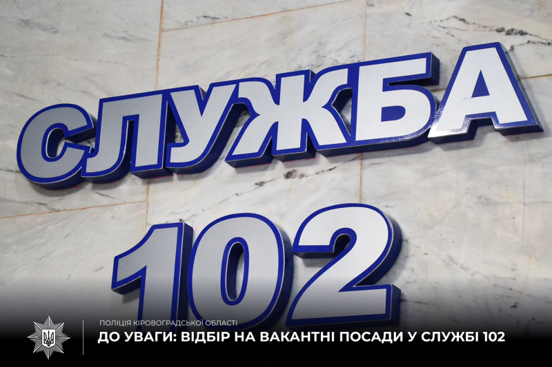 Головне управління Національної поліції в Кіровоградській області проводить відбір кандидатів на заміщення посад на період перебування у відпустці для догляду за дитиною до досягнення нею трирічного віку та період призову на військову службу під час мобілізації основних працівників інспектора І категорії відділу служби «102» управління організаційно-аналітичного забезпечення та оперативного реагування.