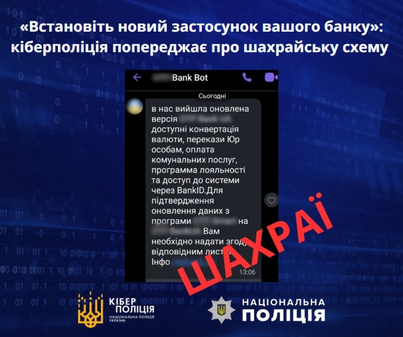 «Встановіть новий застосунок вашого банку»: кіберполіція попереджає про шахрайську схему