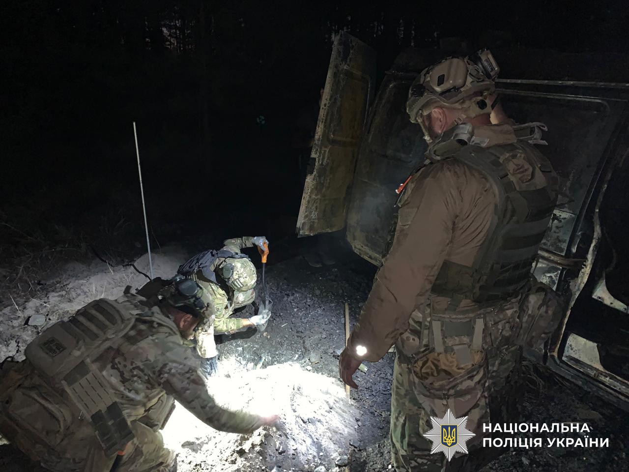 Також правоохоронці проводять розмінування проходів до місць підривів транспортних засобів на протитанкових мінах, зокрема в нічний час.