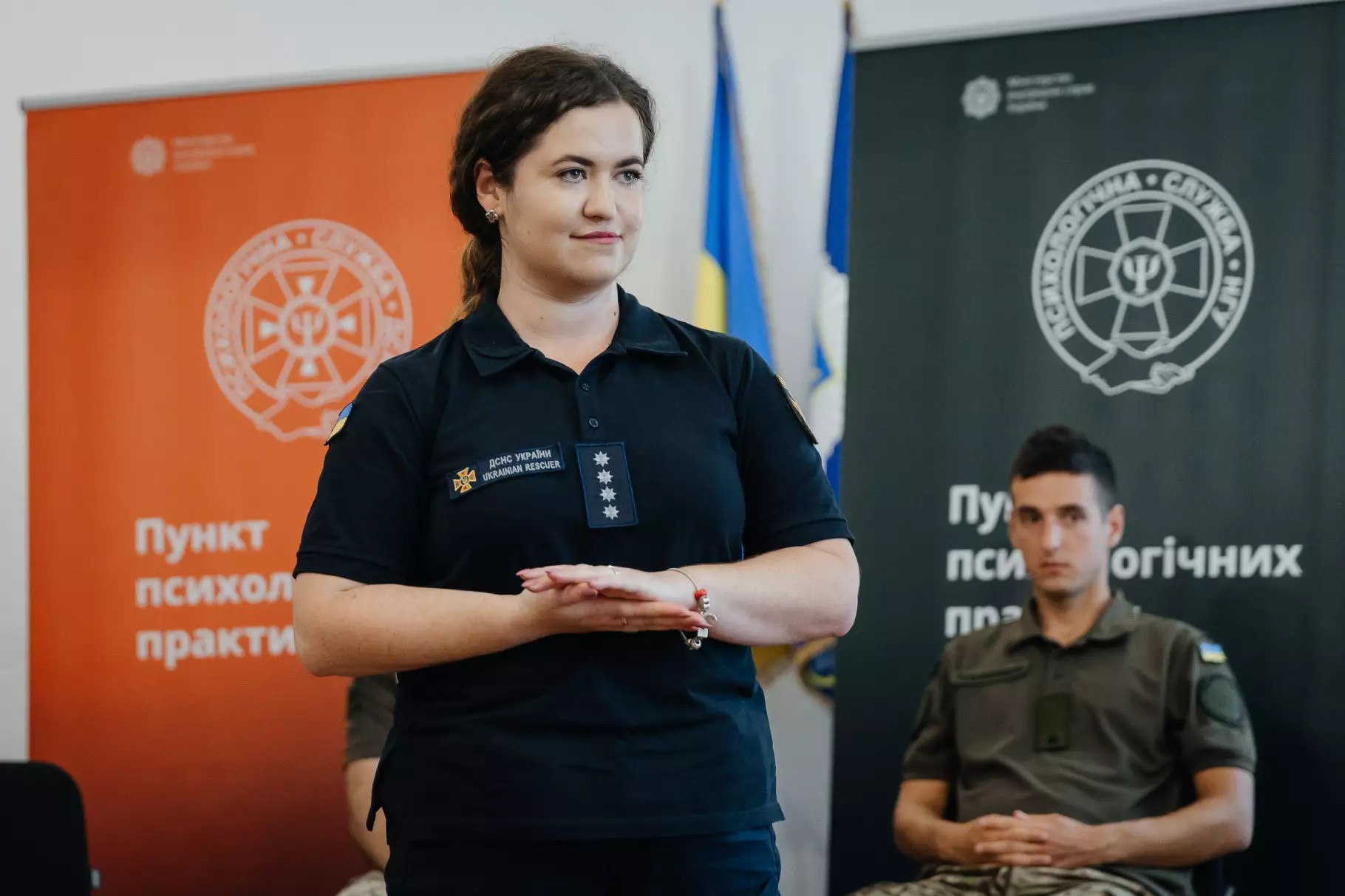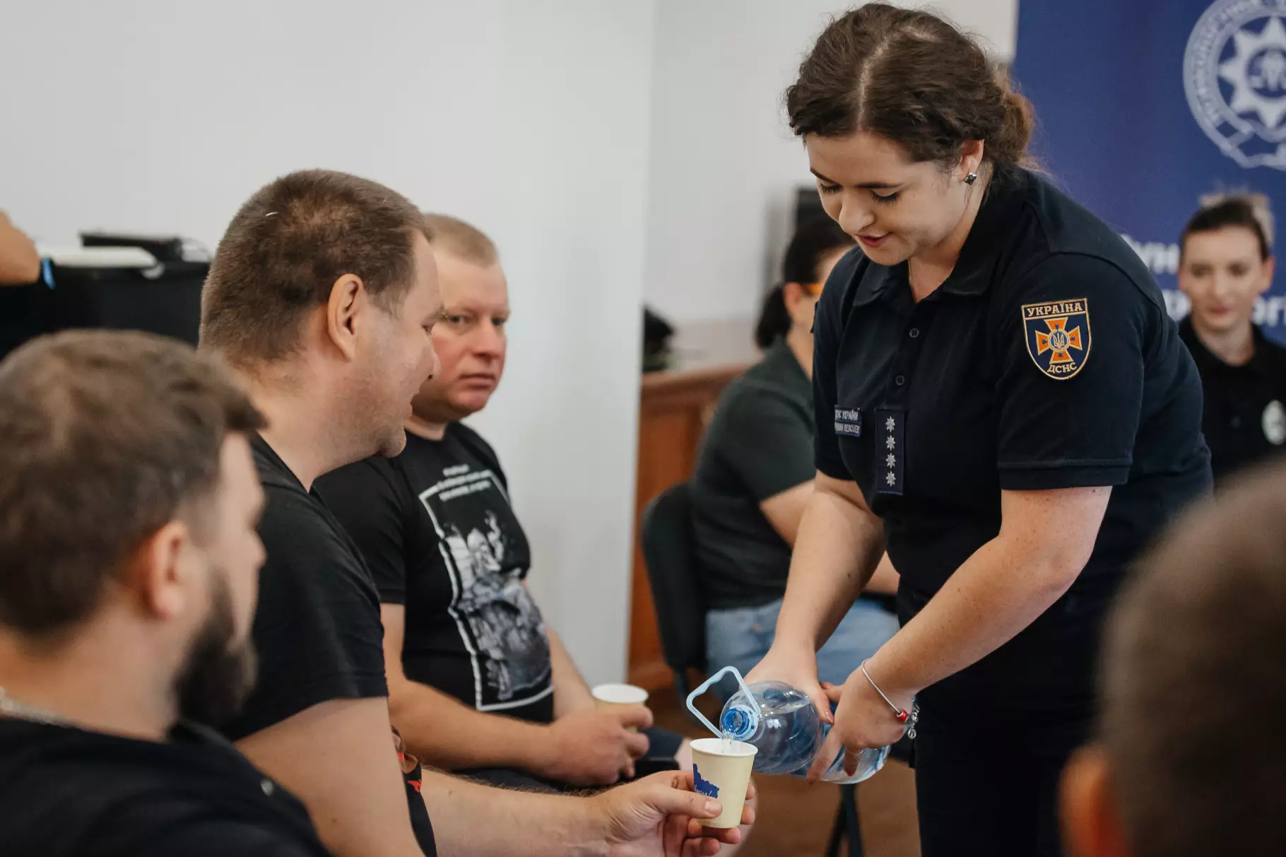 «У стресовому стані відбувається порушення роботи діафрагми, що призводить до поверхневого та частого дихання. Це може створювати відчуття паніки або нервозності, що додатково посилює кризову ситуацію. Також стрес може спричинити зневоднення, тому важливо вживати більше води задля кращого функціонування організму», - наголошує психологиня ДСНС Іванна Давиденко, яка презентувала дві дієві техніки із вправами «4 стихії» та «Контрольоване ковтання води».