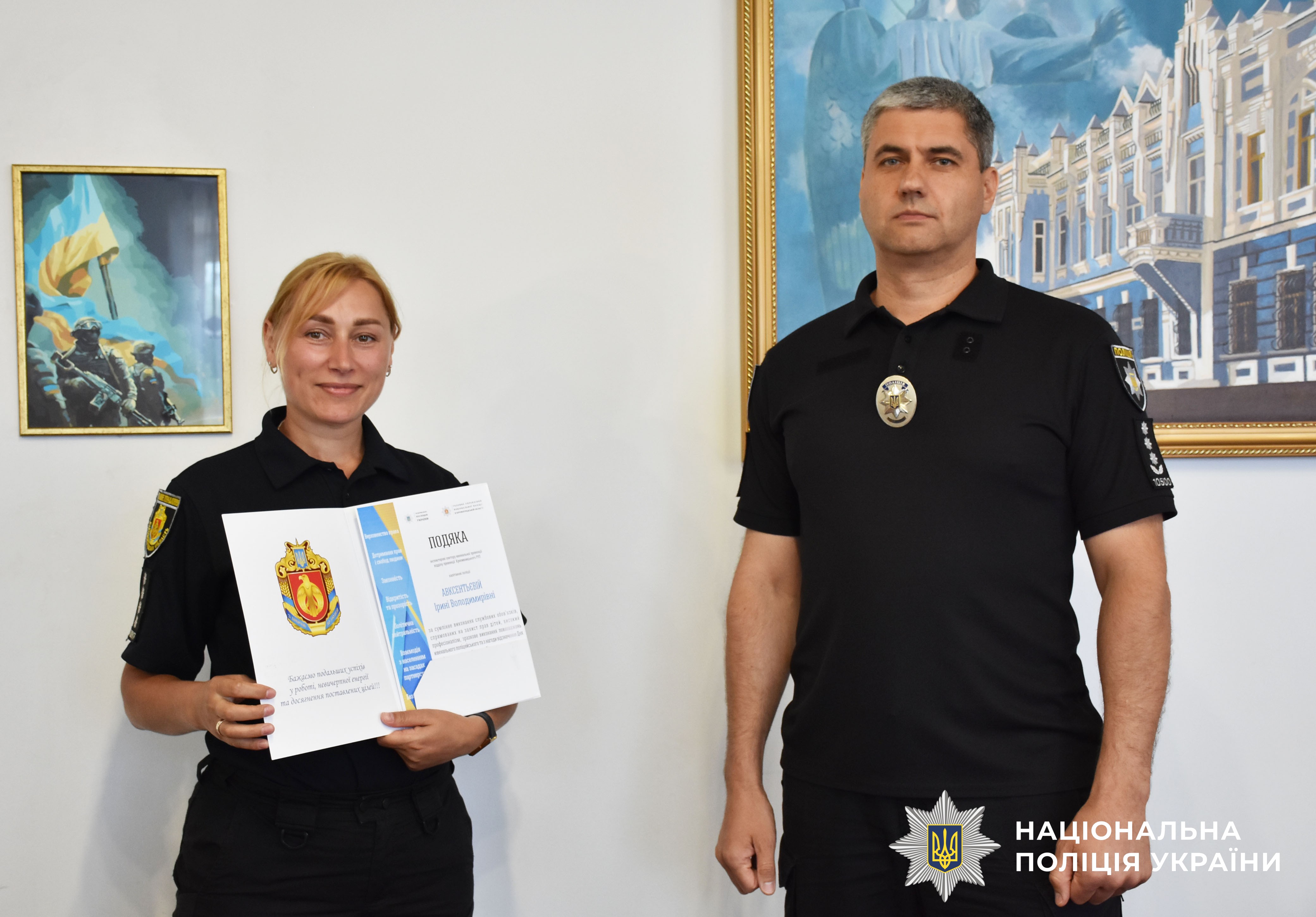 За сумлінне виконання службових обов’язків в умовах воєнного стану, забезпечення безпеки та захисту прав дітей поліцейські підрозділів ювенальної превенції отримали подяки ГУНП та профспілки, цінні подарунки - наручні годинники.