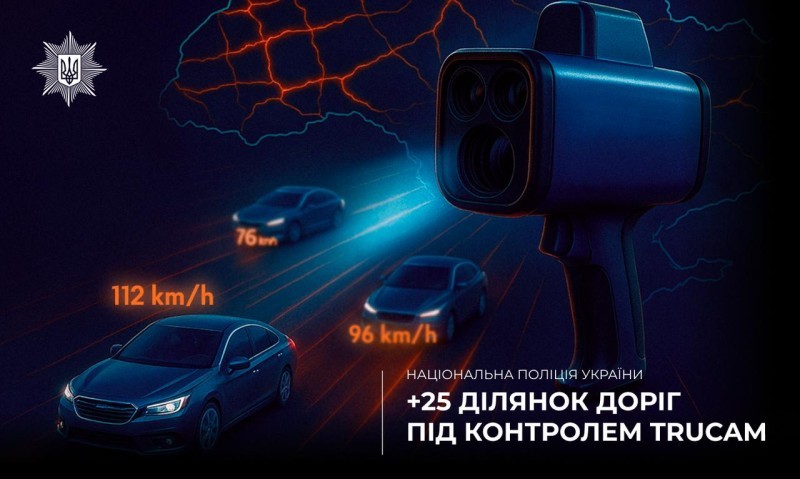 З 11 квітня патрульні працюватимуть з TruCAM на 25 нових ділянках доріг та вулиць населених пунктів