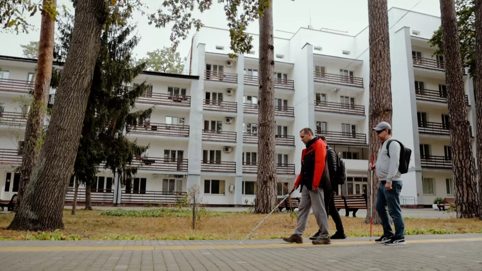 На базі одного з реабілітаційних центрів МВС протягом 21 дня ветерани, які повністю або частково втратили зір на війні заново адаптувалися до життя. Зокрема вчились орієнтуватися у просторі, користуючись білою тростиною, аби пересуватися без допомоги інших.