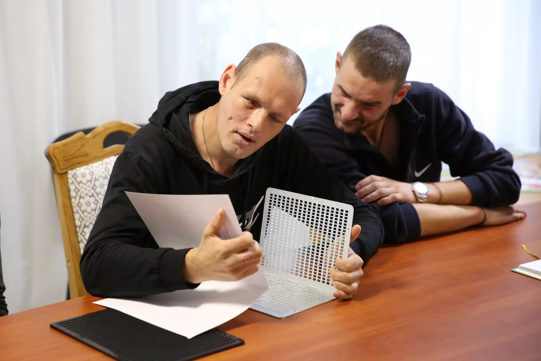 “Ми відштовхуємось від потреб наших героїв, дивимось кому потрібно більше орієнтування в просторі, а хто вже готовий опановувати комп’ютер і освоювати асистивні технології. Все дуже індивідуально”, – зауважила заступниця директора освітньо-реабілітаційного центру «Трініті Хаб» Тетяна Костенко.
