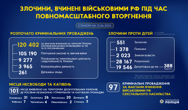Злочини, вчинені військовими рф під час повномасштабного вторгнення в Україну (станом на 13.06.2024)