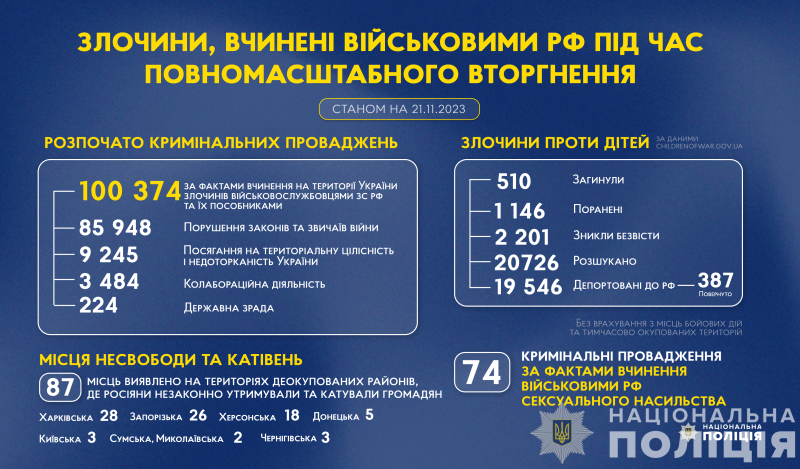 Злочини, вчинені військовими рф під час повномасштабного вторгнення в Україну (станом на 21.11.2023)